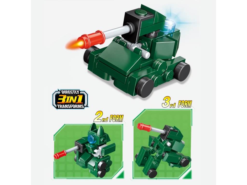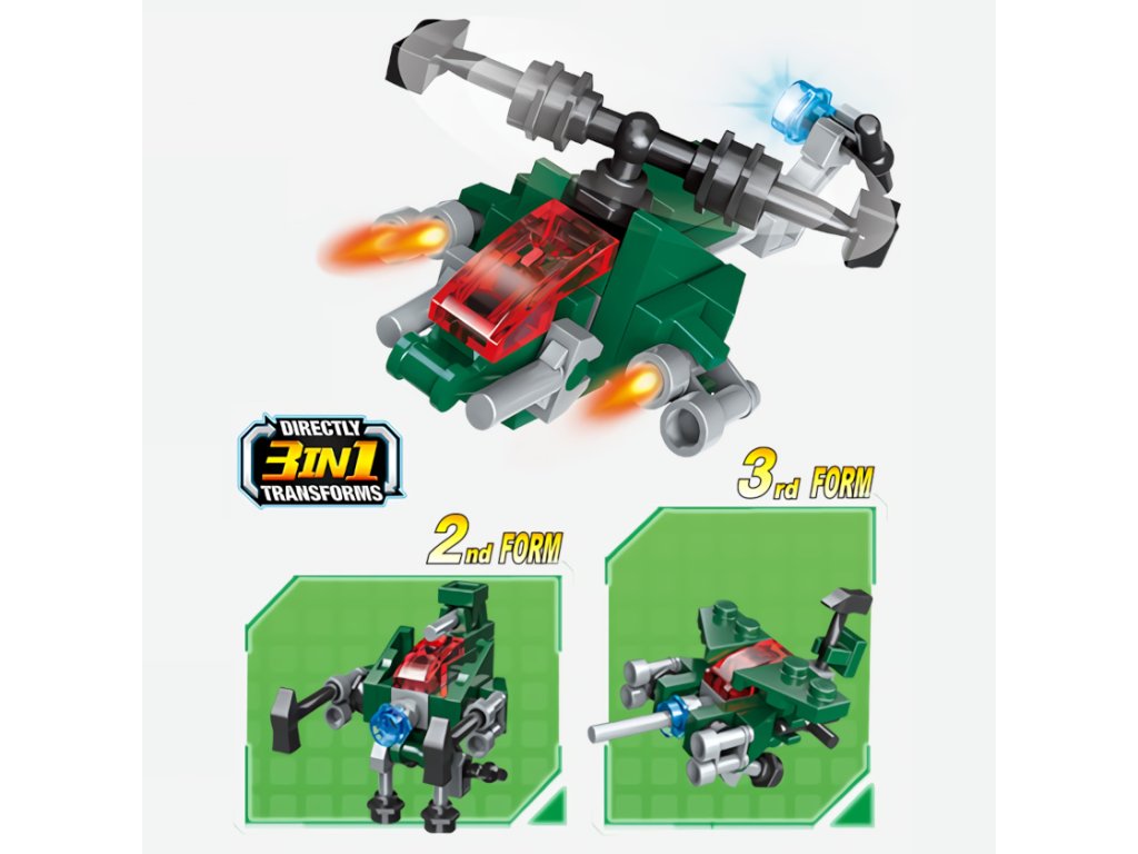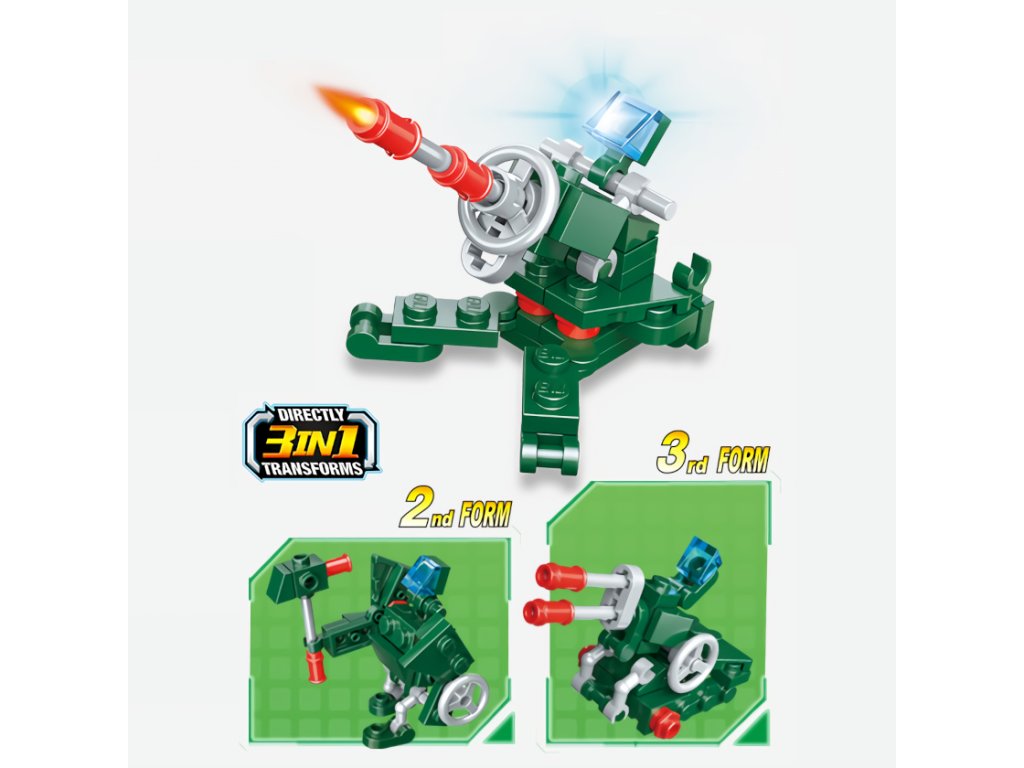 Stavějte a přestavujte! Sada ministavebnic rozmanité techniky, které jednotlivě nabízejí trojici možností sestavení. Zkusíte přijít s vlastními kombinacemi, nebo využít všechny dílky při stavbě jednoho modelu dle vlastní fantazie? Vysoce variabilní stavebnice Qman z pestrobarevných plastových kostiček lze kombinovat s podobnými stavebnicemi mnoha dalších významných výrobců. Vyrobeno z kvalitního, nezávadného a odolného, ABS plastu. Baleno po jednotlivých stavebnicích, v pestře potištěných papírových krabičkách. Hlavní vlastnosti:328 dílků celkem, 30–36 dílků jednotlivě3 varianty sestavení jednotlivé stavebnicekompatibilní se stavebnicemi dalších výrobců Tato sada obsahuje: Stíhačka 3v1 2106-1 (1 ks, 34 dílků) Tank 3v1 2106-2 (1 ks, 35 dílků) Vůz s raketou 3v1 2106-3 (1 ks, 36 dílků) Kanón Flak 3v1 2106-4 (1 ks, 33 dílků) Bojový vrtulník 3v1 2106-5 (1 ks, 30 dílků) Bezpilotní ponorka 3v1 2106-6 (1 ks, 33 dílků) Motorka 3v1 2106-7 (1 ks, 31 dílků) Formule 3v1 2106-8 (1 ks, 32 dílků) Kombajn 3v1 2106-9 (1 ks, 33 dílků) Kamión 3v1 2106-10 (1 ks, 30 dílků)Sizing info