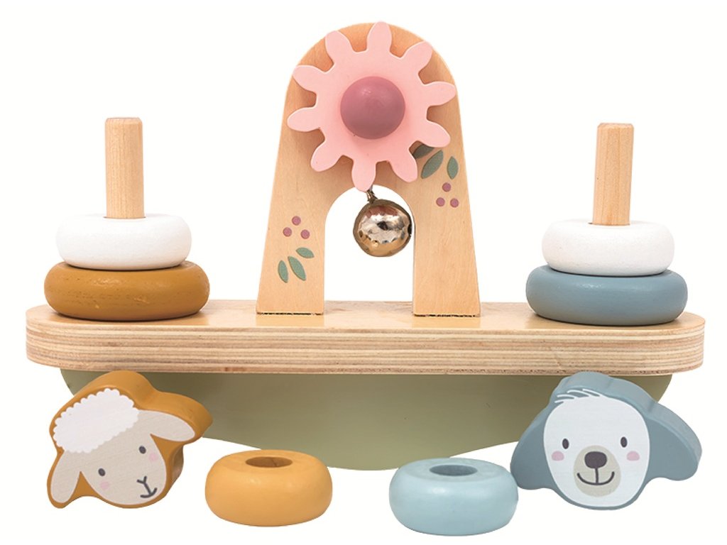 Ovečka nebo pejsek? Kdo udrží rovnováhu? Zábavná balanční hračka, která spojuje skládání, nasazování na tyč, objevování i trošku fyziky! Na jedné straně ovečka, na druhé straně pejsek, které si děti samy sestaví z dřevěných kroužků a hlavičky nasazením na tyč. Plošina se při každém pohybu naklání. Kdo poskládá zvířátka tak, aby byla v rovnováze? Hračka rozvíjí jemnou motoriku, koordinaci ruka-oko i logické myšlení. Učí děti základům rovnováhy, poměru a váhy, a zároveň je díky roztomilému zvířecímu motivu bude bavit. Příjemné pastelové a zemité odstíny barev spolu s kvalitním přírodním dřevem dělají z této hračky krásný doplněk každého pokojíčku. Hlavní vlastnosti: balanční hračka ze dřeva s tyčemi pro nasazovánís ovečkou a pejskemrozvíjí jemnou motoriku, koordinaci ruka oko a logického uvažovánínapomáhá pochopení rovnováhy a základních fyzikálních principůkvalitní dřevěné zpracování v přírodních a zemitých barváchvhodné pro děti od 18 měsícůSizing info