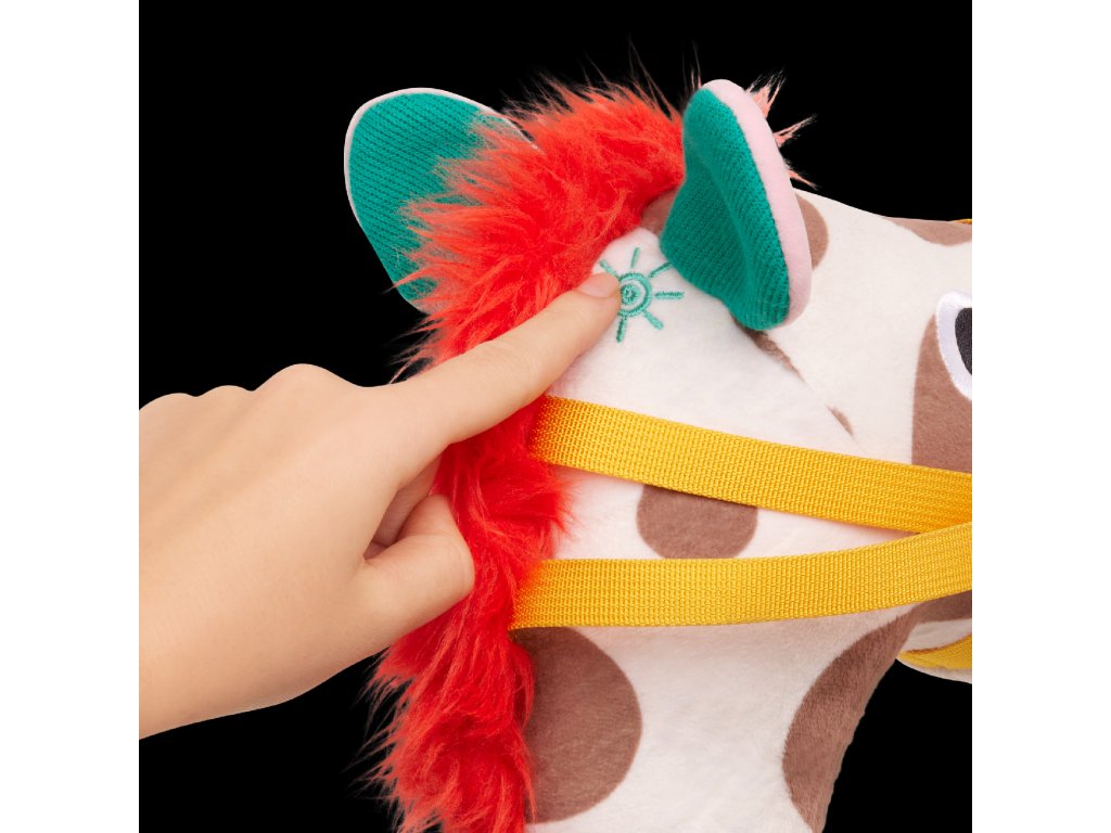 Hurá za dobrodružstvím s roztomilým koníkem Pony Pal od B. Toys! Tento plyšový koník na tyči je moderní verzí klasické hračky "hobby horse" a zaručí dětem spoustu aktivní zábavy. Hebká hlava z různých senzorických materiálů stimuluje hmat, stisknutím tlačítka se navíc ozvou realistické zvuky klapotu kopyt a koňského řehtání. Děti si mohou nasednout, pevně chytit otěže a rozběhnout se za dobrodružstvím. Díky pogumované spodní části nezanechá tyč škrábance na podlaze. Hračka rozvíjí hrubou motoriku a koordinaci pohybů. Vyměnitelné baterie 2xAAA jsou součástí. Vhodné pro děti od 2 let.Doplňkové parametry