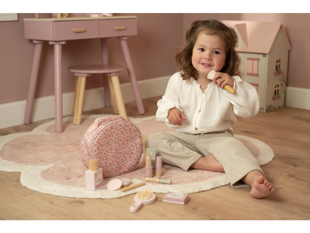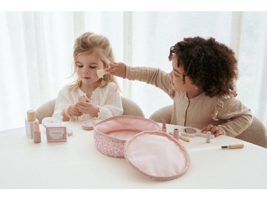 S touto krásnou dřevěnou kosmetickou sadou si vaše malá parádnice užije spoustu zábavy! Měkká látková taštička s květinovým vzorem ukrývá nejrůznější doplňky na hraní – zrcátko, lahvičku parfému, rtěnku, lak na nehty a další nezbytnosti pro každou malou stylistku. Sada je ideální pro hru na dospělé, podporuje rozvoj fantazie a sociálních dovedností – a to vše bez nepořádku. Malé ručičky si mohou trénovat jemnou motoriku a zároveň se cítit krásně, stejně jako maminka. Hračka je součástí kolekce vysoce kvalitních dřevěných hraček Little Dutch, navržených s důrazem na bezpečnost a originální design. Dřevěné části jsou vyrobené z odolného FSC certifikovaného dřeva. Rozměry: 25 x 21 x 10 cm Vhodné pro děti od 3 let.Doplňkové parametry