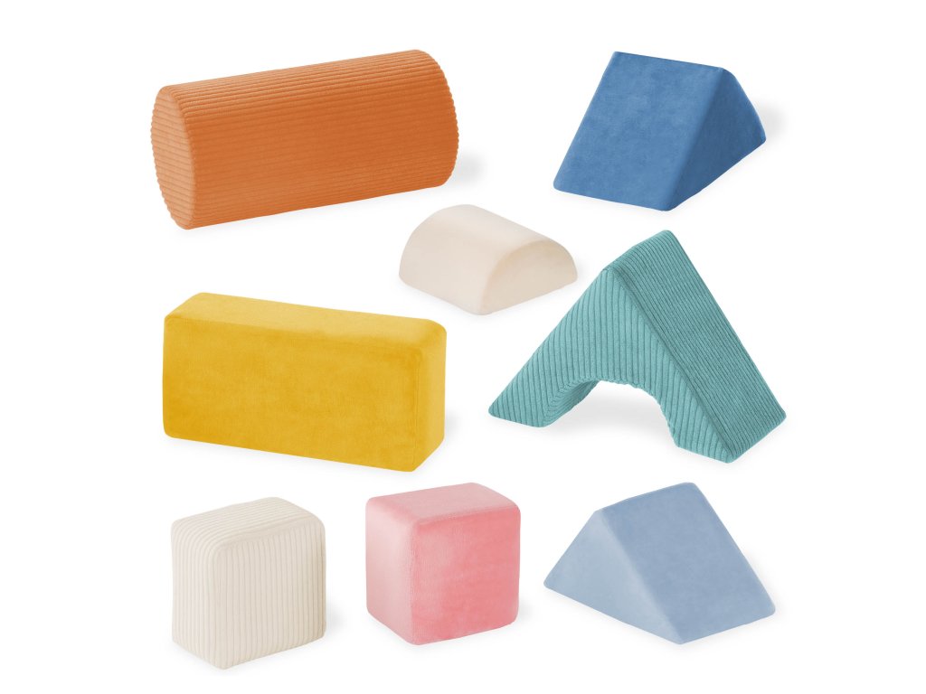 Stavět, mačkat, objevovat – s měkkými pěnovými kostkami Tumble-y Towers od B. Toys si děti užijí hodiny hravého učení! Tato sada osmi kostek v různých tvarech je navržena speciálně pro nejmenší stavitele – kostky jsou lehké, měkké a potažené různorodými texturovanými látkami pro rozvoj hmatu a smyslového vnímání. Děti si mohou stavět vlastní věže, zkoumat barvy a tvary nebo kostky jen tak mačkat a objímat. Hraní s Tumble-y Towers podporuje koordinaci oko-ruka, kreativitu i první motorické dovednosti. Balení obsahuje 8 kostek. Vhodné pro děti od 6 měsíců.Doplňkové parametry