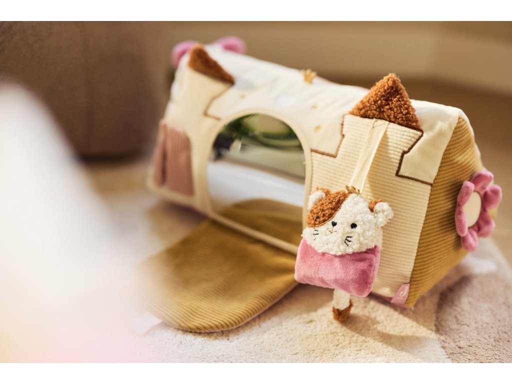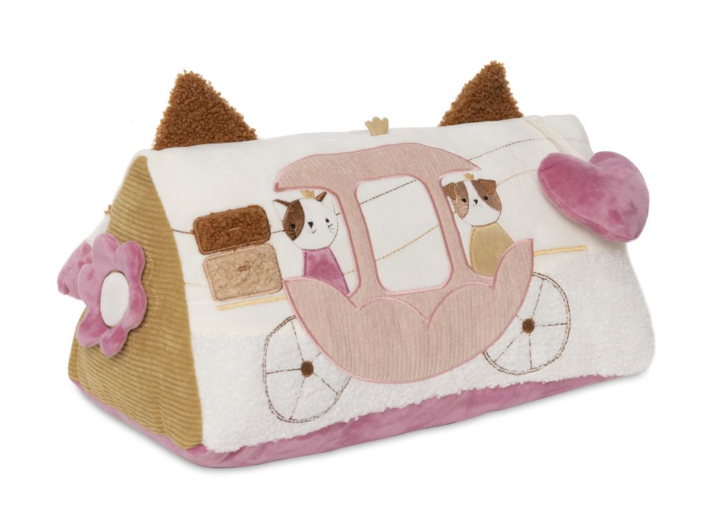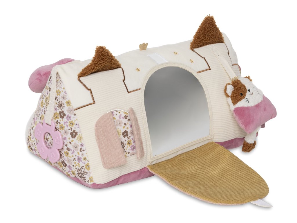 Měkký trojhranný polštářek ve tvaru pohádkového zámku nabízí spoustu aktivit pro zábavu i rozvoj smyslů vašeho miminka. Tvar polštářku je ideální pro hraní v poloze na bříšku, která přináší dítěti jiný pohled na svět a posiluje krční a zádové svaly, které mu později umožňují začít se přetáčet, lézt a sedět bez opory. Různé aktivity a textury podněcují dětskou zvídavost, podporují motoriku a smyslové vnímání Bezpečné zrcátko, otevírací dvířka, kousátko, kapsičky, šusticí prvky apod. lákají ke zkoumání Ideální pro hraní na bříšku, které pomáhá posilovat krční a zádové svaly Vyrobeno z jemného polyesteru, který je příjemný na dotek a vhodný pro miminka Vhodný pro děti, které začínají objevovat svět kolem sebe Složení: 100 % polyester Rozměry: 36 × 21 × 16 cm Možno prát v ruce.Doplňkové parametry