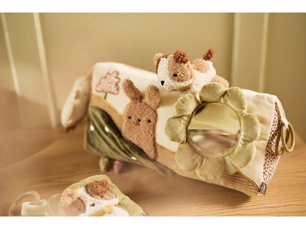 Měkký trojhranný polštářek s roztomilými zvířátky nabízí spoustu aktivit pro zábavu i rozvoj smyslů vašeho miminka. Tvar polštářku je ideální pro hraní v poloze na bříšku, která přináší dítěti jiný pohled na svět a posiluje krční a zádové svaly, které mu později umožňují začít se přetáčet, lézt a sedět bez opory. Různé aktivity a textury včetně bezpečného zrcátka podněcují dětskou zvídavost, podporují motoriku a smyslové vnímání Ideální pro hraní na bříšku, které pomáhá posilovat krční a zádové svaly Plyšový pejsek a ptáček a vyšitá postavička králíčka vytvářejí veselou a přátelskou atmosféru Vyrobeno z jemného polyesteru, který je příjemný na dotek a vhodný pro miminka Vhodný pro děti, které začínají objevovat svět kolem sebe Složení: 100 % polyester Rozměry: 36 × 17 × 16 cm Možno prát v ruce.Doplňkové parametry
