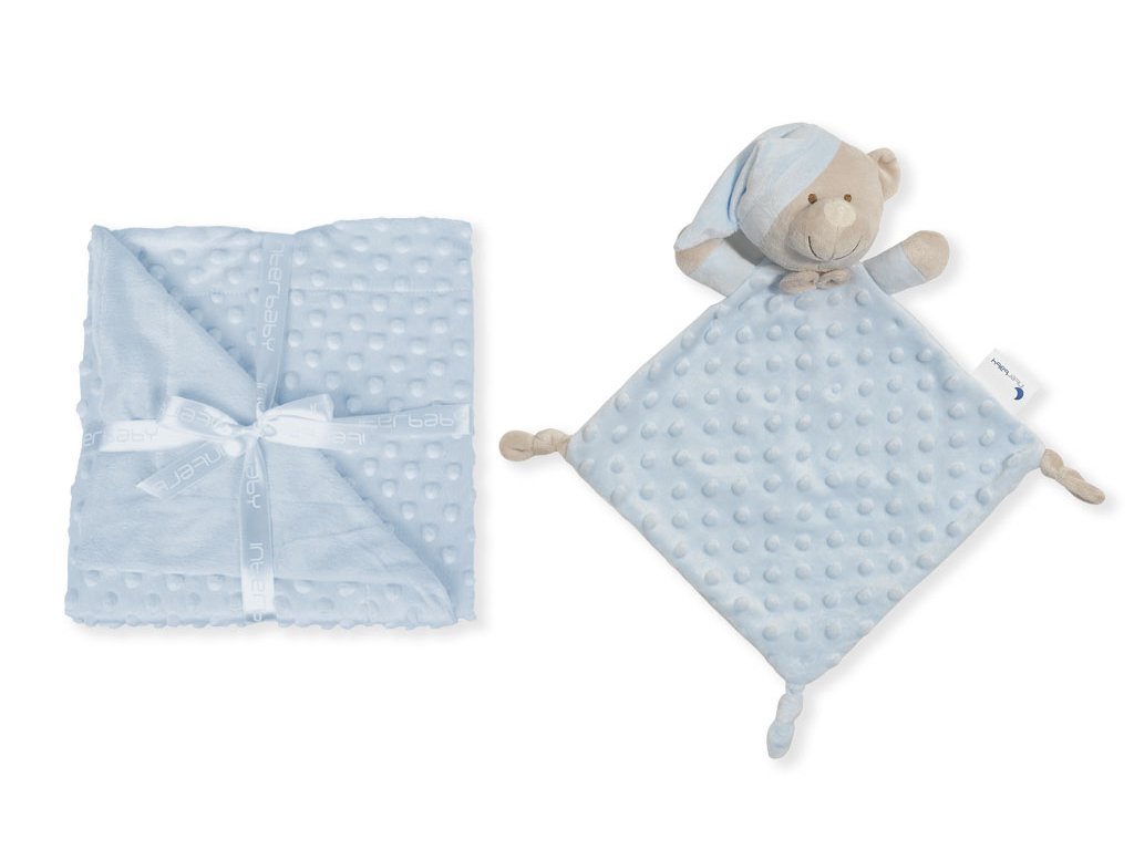 Nádherný darček balený v darčekovej krabičke s maznáčikom, vhodný pre narodené bábätká i väčšie deti do troch rokov, ktoré si veľkosť deky užijú. Deka je jemná k detskej pokožke.