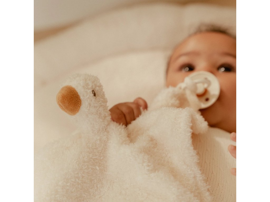 Plyšový muchláček s roztomilou husou a úchytem pro šidítko láká ke hraní i mazlení. Muchláček je je vyroben z velmi jemného a příjemného materiálu a je ideální jako společník do postýlky pro klidné usínání. Hračka je součástí designové kolekce hraček Little Dutch Newborn Naturals. Rozměry: 24 x 24 cm Složení: 100% polyester Výplň je vyrobena ze 100% recyklovaného polyesteru s certifikací GRS (Global Recycled Standard). Vhodné pro děti od narození.Doplňkové parametry