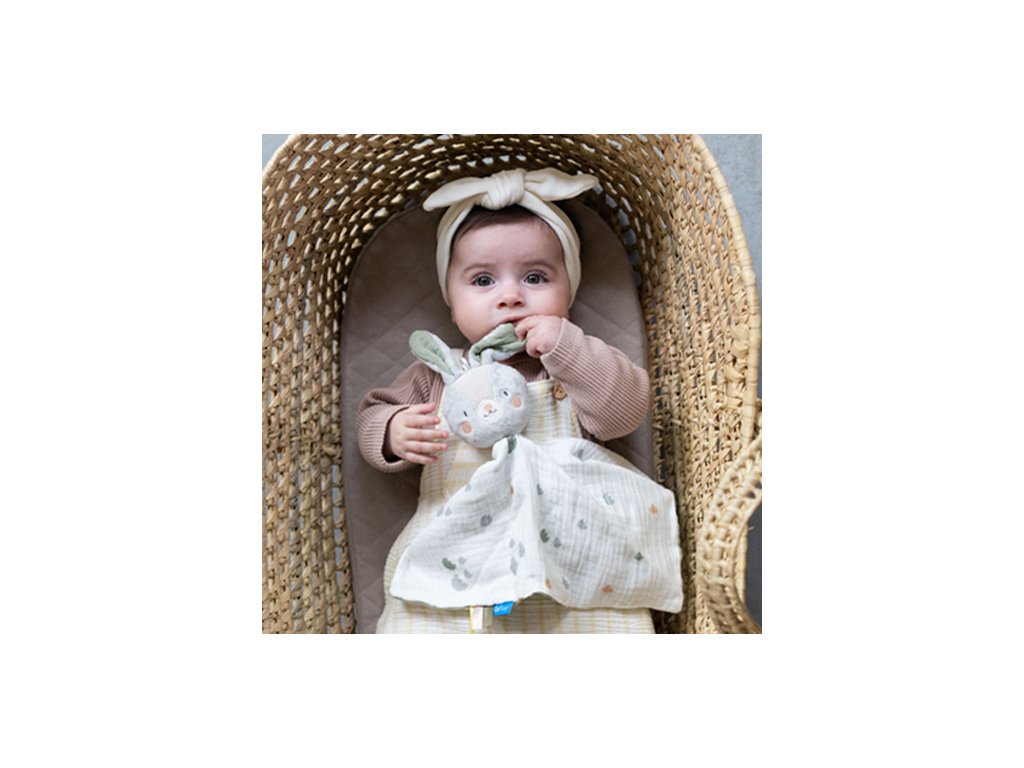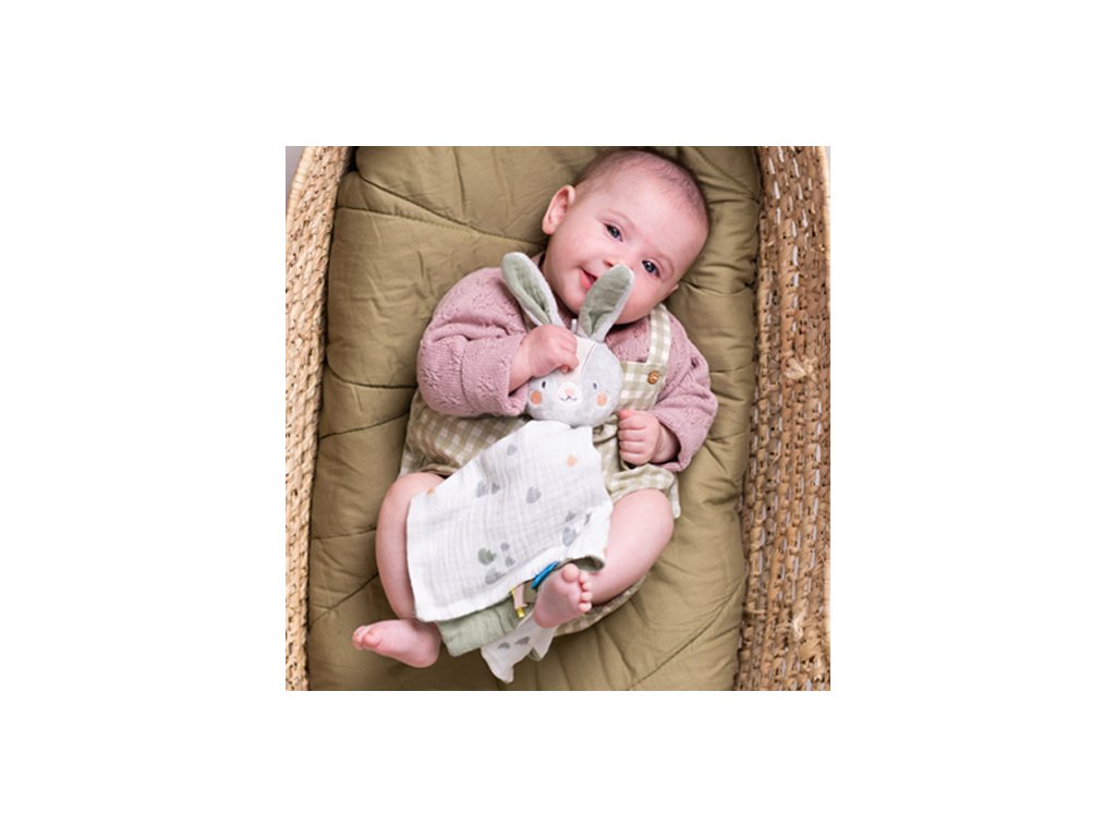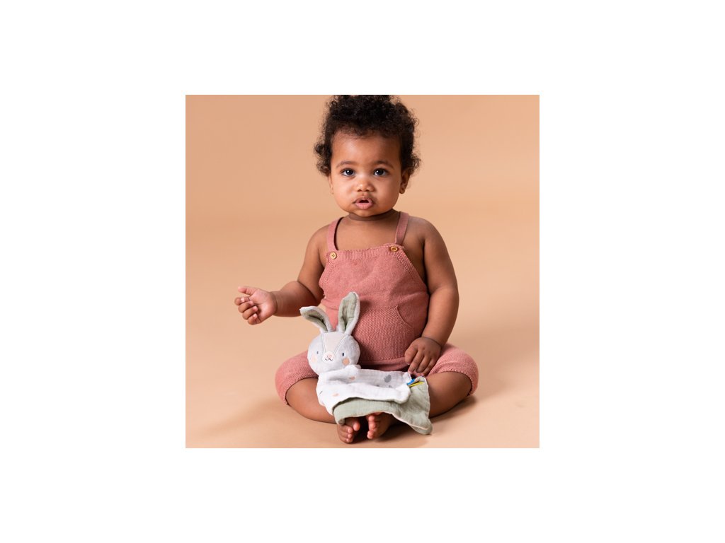 Mazlicí hračka v podobě usměvavého králíčka Rylee zpříjemní vašemu miminku usínání v postýlce. Muchláček z jemného, měkkého materiálu je vhodný jako první hračka dítěte a zároveň pomáhá rozvoji smyslů a emoční inteligence dítěte. Rozměry: 36 x 20 cm Složení: 100% bavlna Vhodné pro děti od narození.Doplňkové parametry