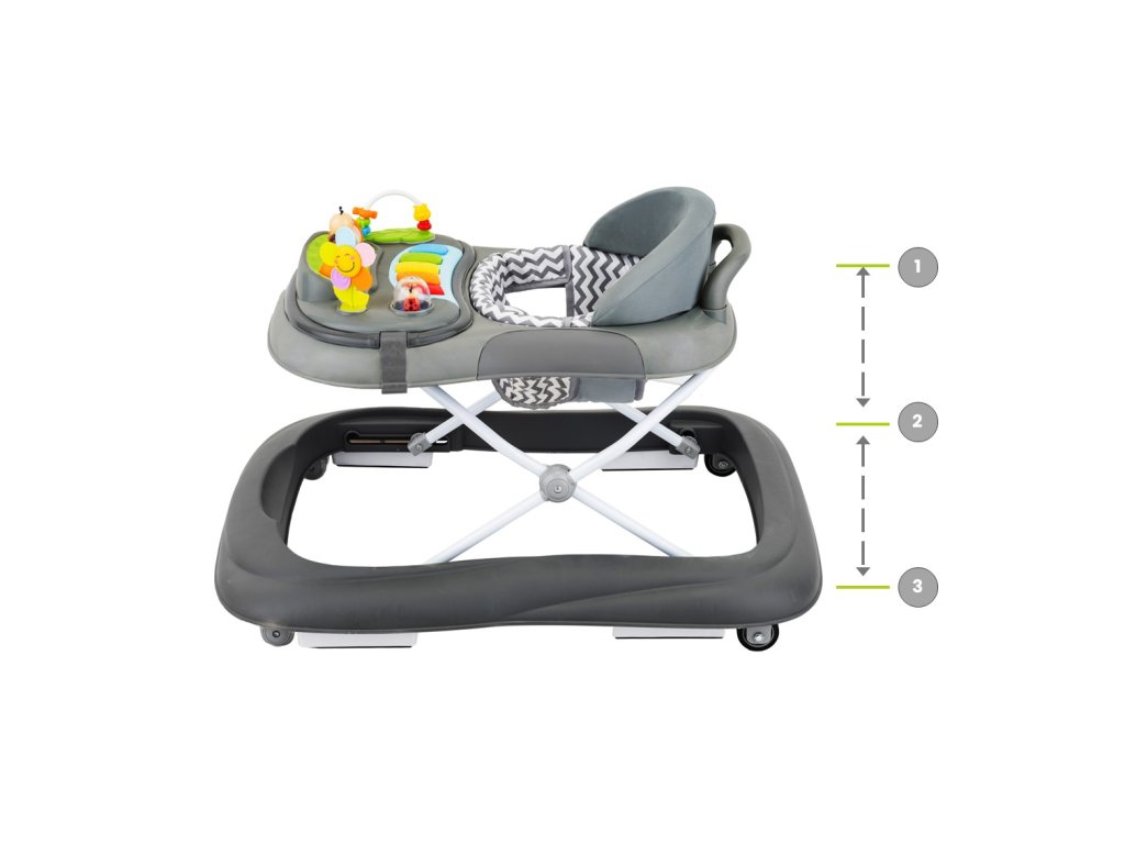 Součástí chodítka je hudební aktivity panel, který rozvíjí sluchové, hmatové a koordinační dovednosti dítěte.