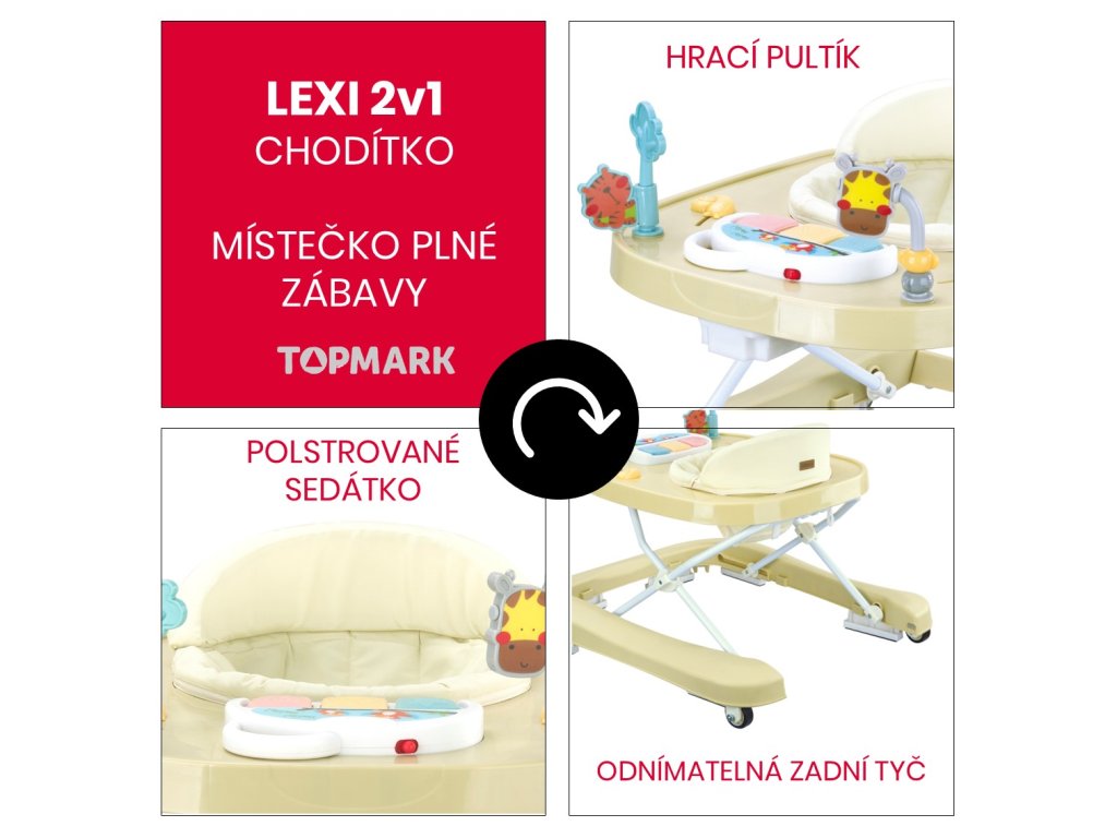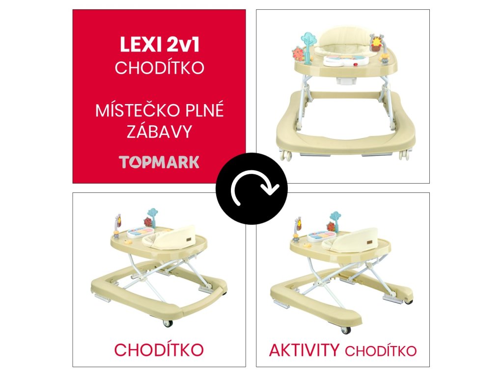 Hrací pultík obsahuje krásné veselé hračky, které rozvíjí koordinaci děťátka a rozveselí jej zvuky a světly. Chodítko je vybaveno kolečky a brzdičkami, které brání v převážení chodítka, jakmile se těžiště přesune na zadní kola. Jakmile vaše děťátko povyroste a začne dělat první krůčky je načase opustit chodítko a využít jeho druhou funkci, kdy po vyjmutí zadní tyče poskytuje chodítko podporu a mění se v AKTIVITY chodítko.