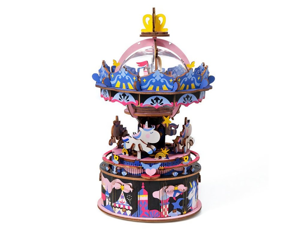 RoboTime 3D dřevěná skládačka hrací skříňky Veselý kolotoč