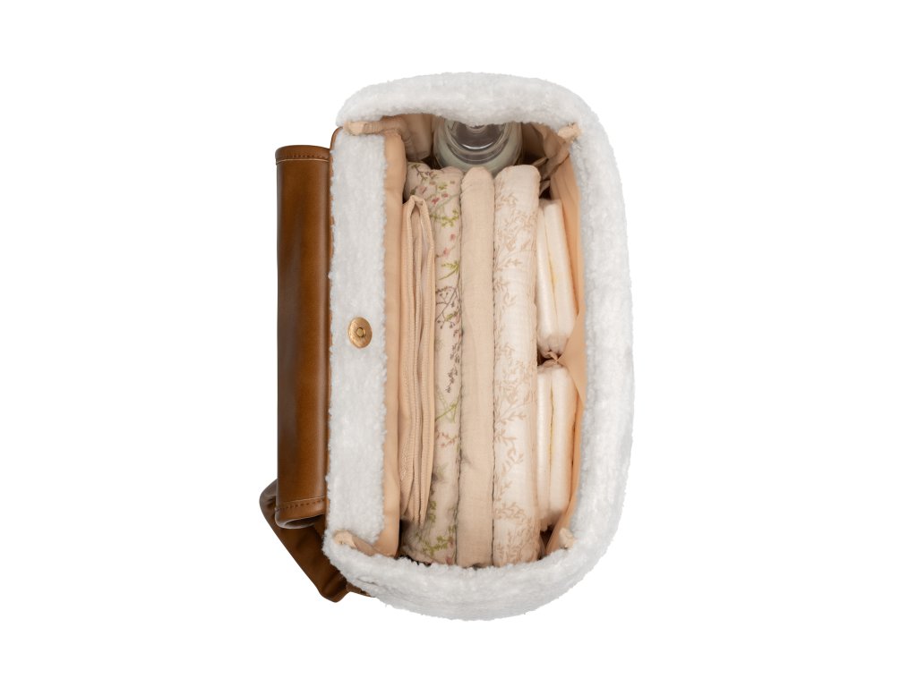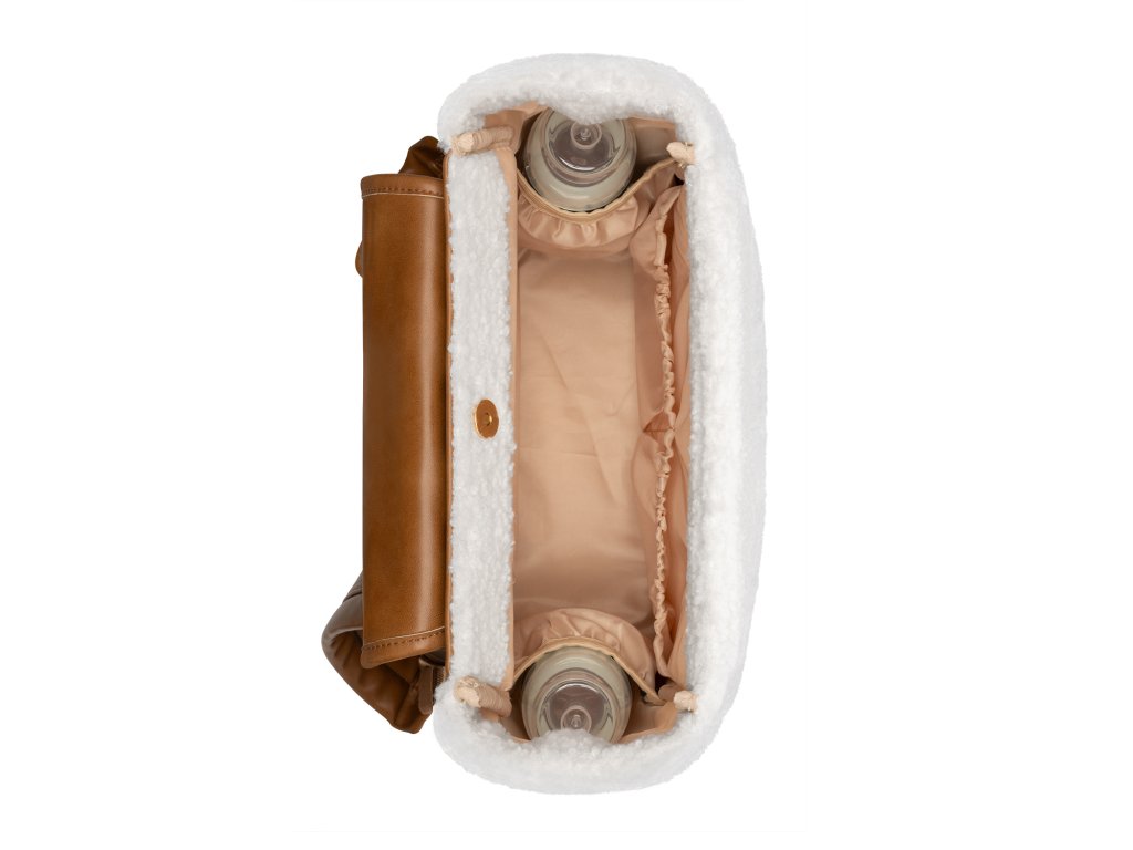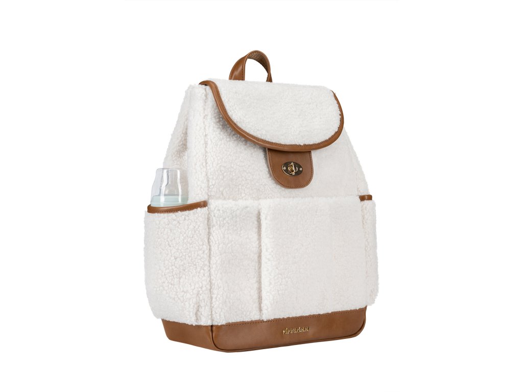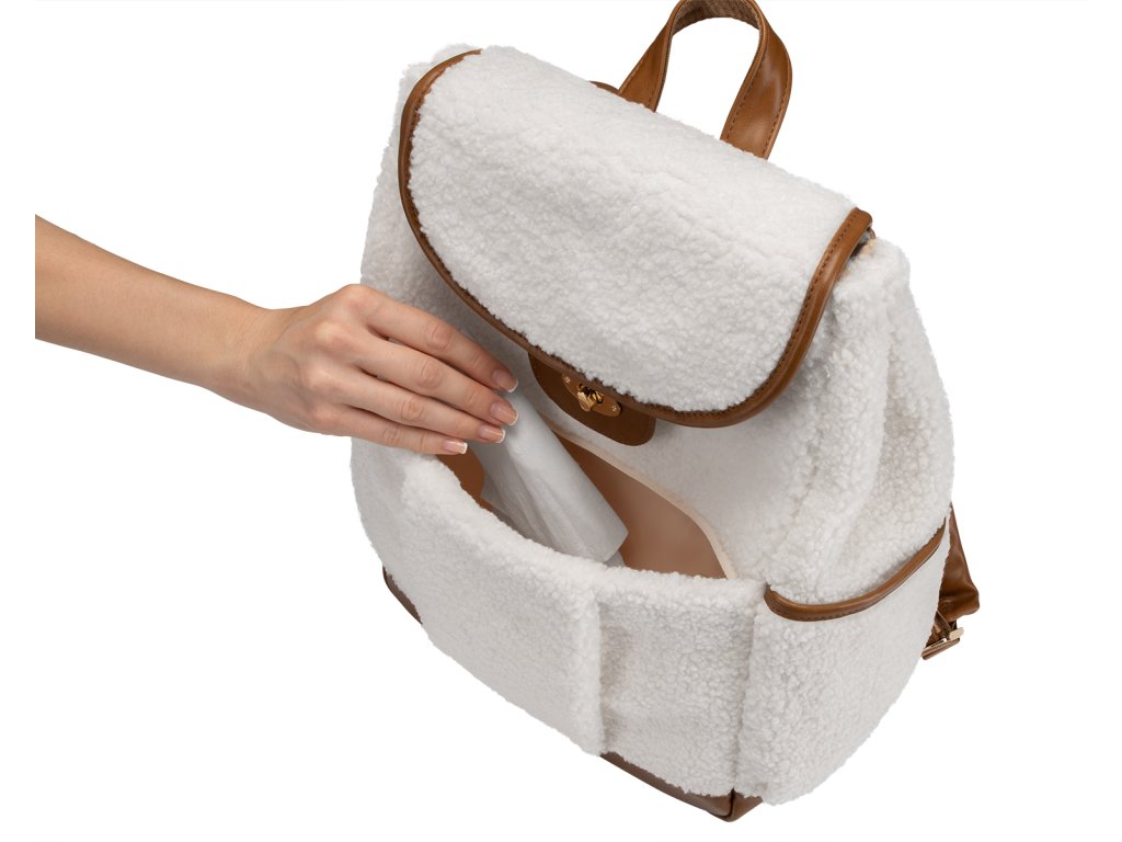 Přebalovací batoh z plyšového materiálu s detaily z umělé kůže umožňuje přehledné uložení všeho potřebného na procházky a výlety s vaším dítětem. Klipy umožňují zavěšení na madla kočárku. Magnetické uzavírání s otočným kovovým uzávěrem umožňují snadné otevření batohu jednou rukou. Uvnitř batohu najdete množství kapes a přihrádek i voděodolnou kapsu pro uložení vlhkých předmětů. Široký způsob otevírání batohu usnadňuje orientaci v uloženém obsahu. Na vnější straně najdete kapsy s uzavíráním na zip i kapsu pro uložení láhve. Termoizolační kapsy na láhve pomáhají udržet nápoje či mléko delší dobu v optimální teplotě. Součástí batohu je i přebalovací podložka. Batoh je možné zavěsit na kočárek, připevnit k rukojeti kufru, nosit na zádech i v ruce. Složení: 100% polyester Rozměry: 40 x 28 x 15 cmDoplňkové parametry