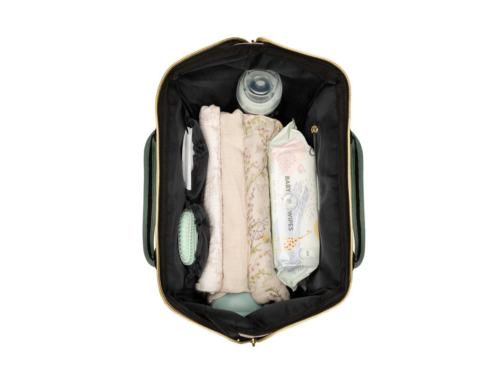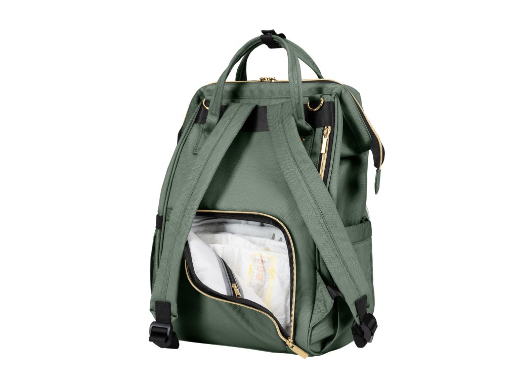 Stylový přebalovací batoh umožňuje přehledné uložení všeho potřebného na procházky a výlety s vaším dítětem. Klipy umožňují zavěšení na madla kočárku. Uvnitř batohu najdete množství kapes a přihrádek i voděodolnou kapsu pro uložení vlhkých předmětů. Široký způsob otevírání batohu usnadňuje orientaci v uloženém obsahu. Na vnější straně najdete kapsy s uzavíráním na zip i kapsu pro uložení láhve. Termoizolační kapsy na láhve pomáhají udržet nápoje či mléko delší dobu v optimální teplotě. Součástí batohu je i přebalovací podložka. Batoh je možné zavěsit na kočárek, nosit na zádech i v ruce. Složení: 100% polyester Rozměry: 44,5 x 35,5 x 47 cmDoplňkové parametry