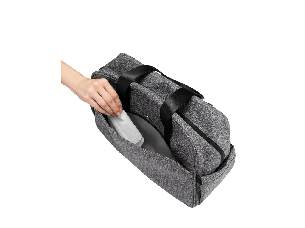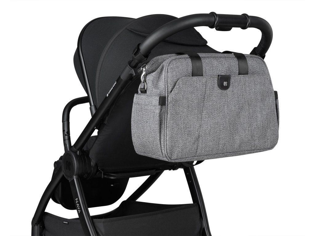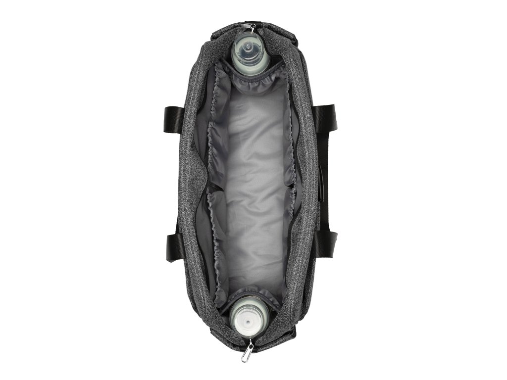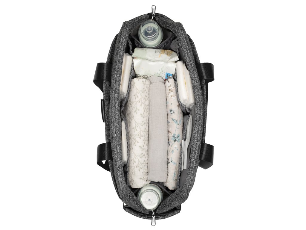 Stylová přebalovací taška umožňuje přehledné uložení všeho potřebného na procházky a výlety s vaším dítětem. Klipy umožňují zavěšení na madla kočárku. Uvnitř tašky najdete přebalovací podložku, množství kapes a přihrádek, voděodolnou kapsu pro uložení vlhkých předmětů a dvě termoizolační kapsy pro láhve. Na vnější straně najdete kapsu na zip i prostor pro uložení láhve. Držadla z měkké umělé kůže umožňují pohodlné nošení v ruce, součástí tašky je i ramenní popruh pro nošení přes rameno. Složení: 100% polyester Rozměry: 44 x 28 x 16 cmDoplňkové parametry