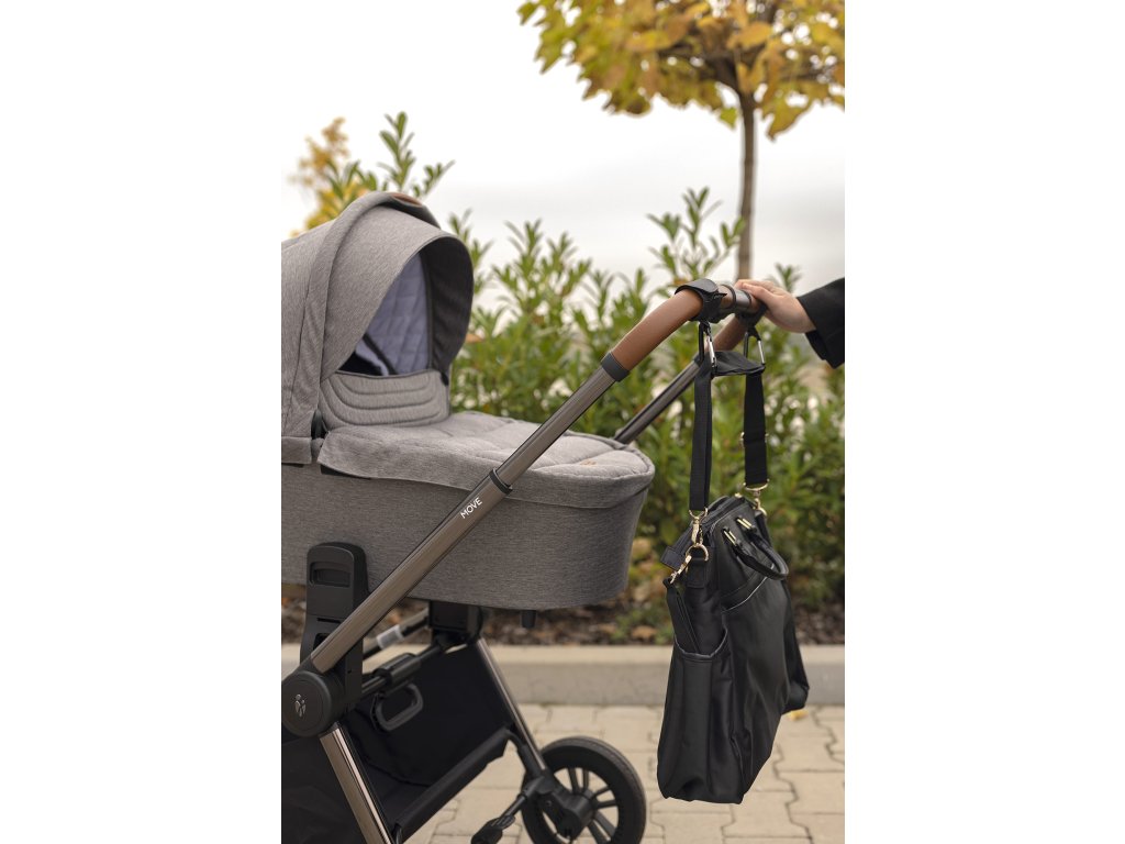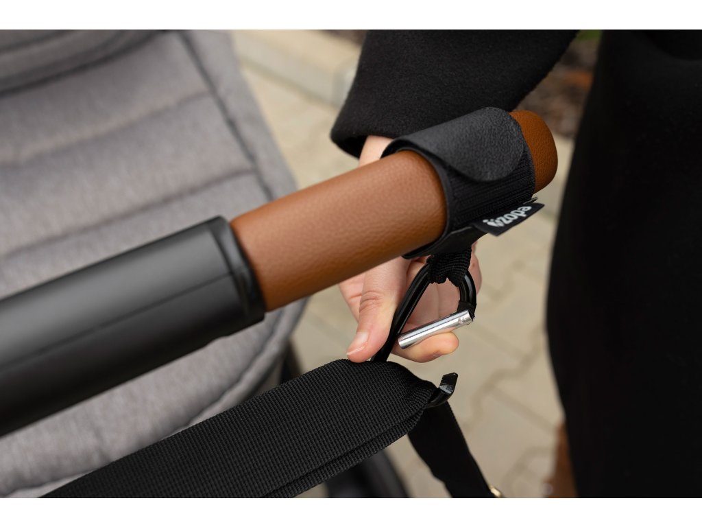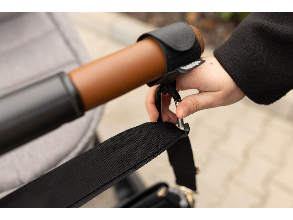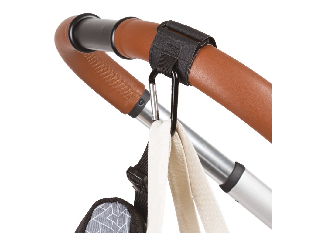 Popruh se skobou se hodí na každý typ kočárku. Snadno se instaluje pomocí