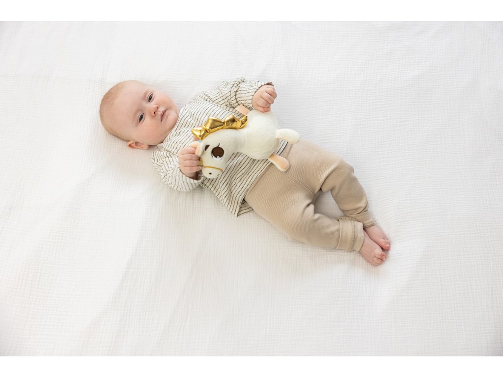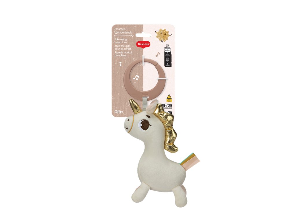 ÚTULNÝ A ROZTOMNÝ: Kroužek, kterým lze hračku připevnit na autosedačku nebo kočárek, vám umožní vzít si ji s sebou na cesty, díky čemuž může být jednorožec všude s vaším drobečkem a poskytuje mu pocit bezpečí .
