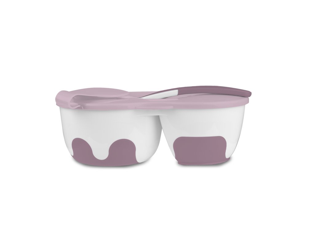 Konstrukce misky umožňuje rozdělení jídla do dvou komor, což umožňuje podávat miminku pestrou stravu.