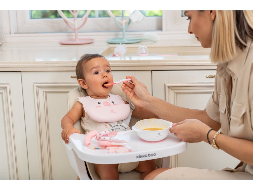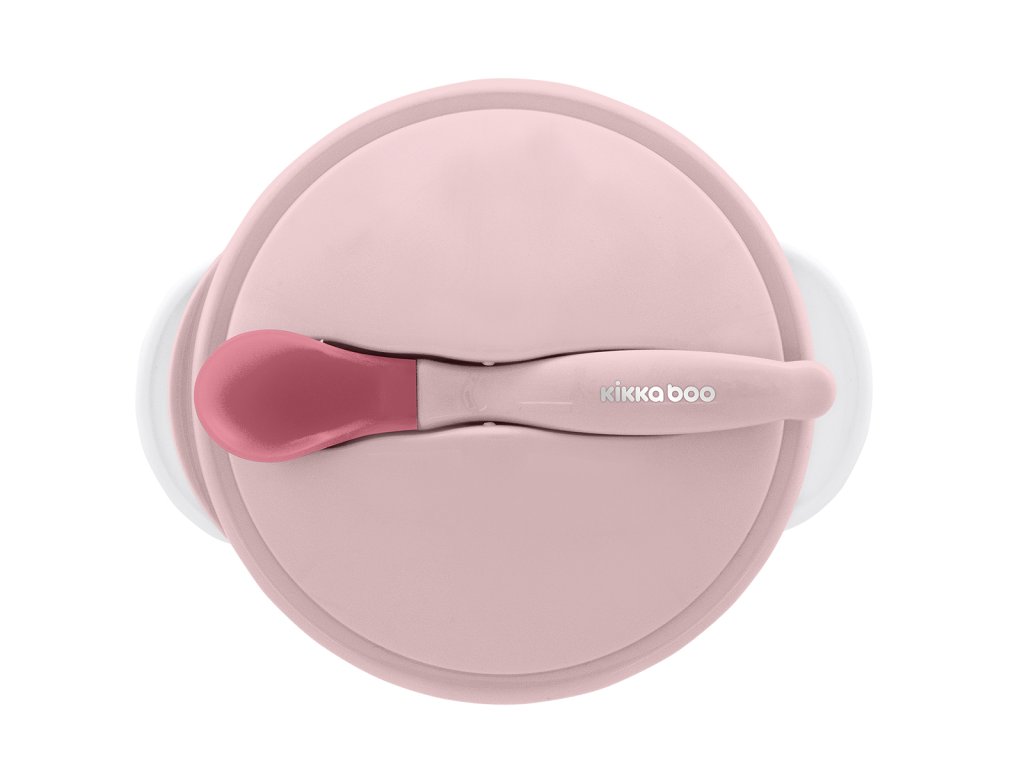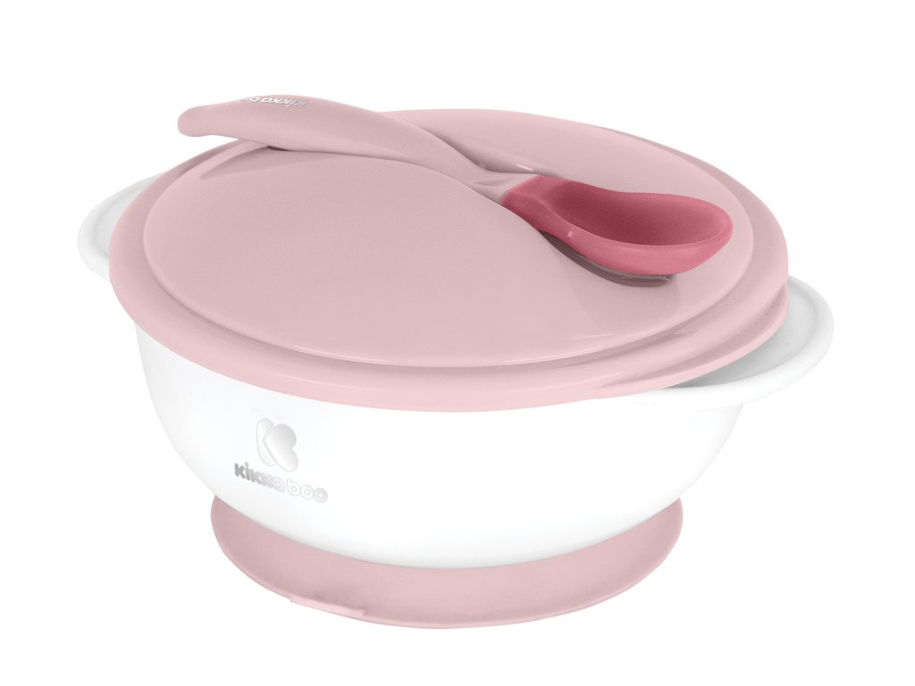 KIKKABOO Miska s přísavkou, víčkem a lžičkou s tepelným senzorem Pink