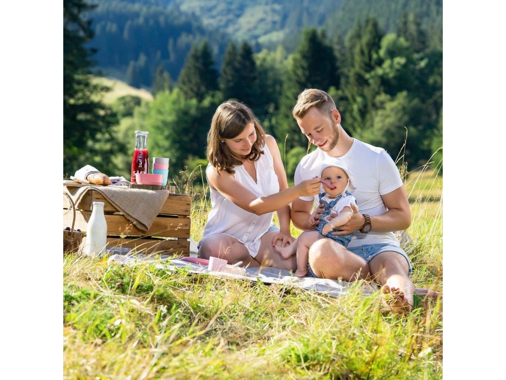 Vysoce kvalitní dětské nádobí je ideální pro každodenní použití doma, ale je také dobrou alternativou k jednorázovému nádobí mimo čtyři stěny bytu. Nádobí je stohovatelné, proto je lze uložit tak, abyste ušetřili místo, a vzít si je s sebou. Díky svým lehkým a nerozbitným vlastnostem je ideální pro táboření, pikniky nebo jiné výlety.