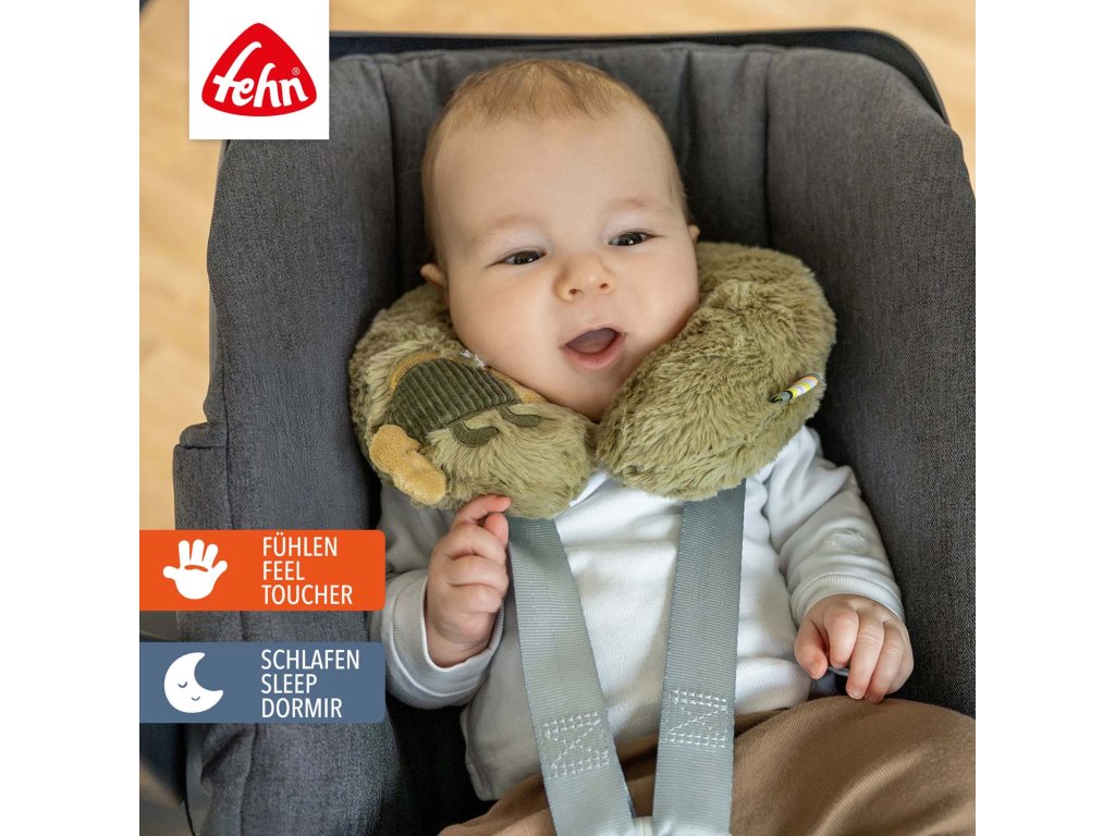 Polštářek za krk se zvířecí aplikací – ergonomický tvar podpírá, odlehčuje a zajišťuje bezpečnou oporu v autě, autosedačce nebo kočárku.