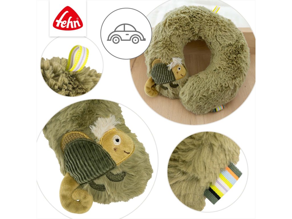 Pro klidný spánek při krátkých i dlouhých cestách autem: polštářek za krk Chameleon z kolekce Lazy, Crazy & Pink zajišťuje bezpečnou oporu hlavičky miminka. Podporuje a ulevuje krční páteři a ramenům. Ergonomický tvar se přizpůsobí konturám dětského krku a polstrované boční části zabraňují přepadávání hlavičky dopředu. Miminko je v ideálním prostředí s malým plyšovým chameleonem aplikovaným na opěrce krku – ať už v autě, dětské autosedačce nebo kočárku. Hebký chameleon zabaví i to nejneklidnější miminko i při nejdelších cestách!