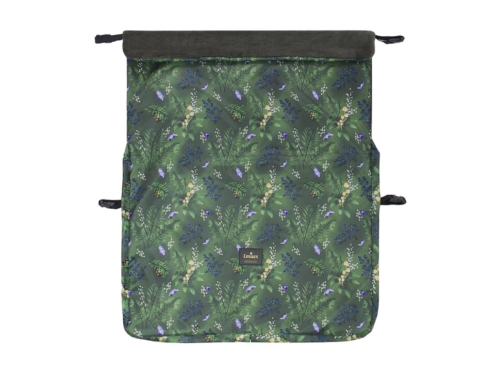 Praktické je uchycení ke kočárku pomocí elastické gumy se sponou, což umožňuje uchytit nánožník pevně na různých místech. Zatažením za šňůrku s brzdou se ve spodní části nánožníku vytvoří kapsa, ve které zůstanou nožičky dítěte v teple.
