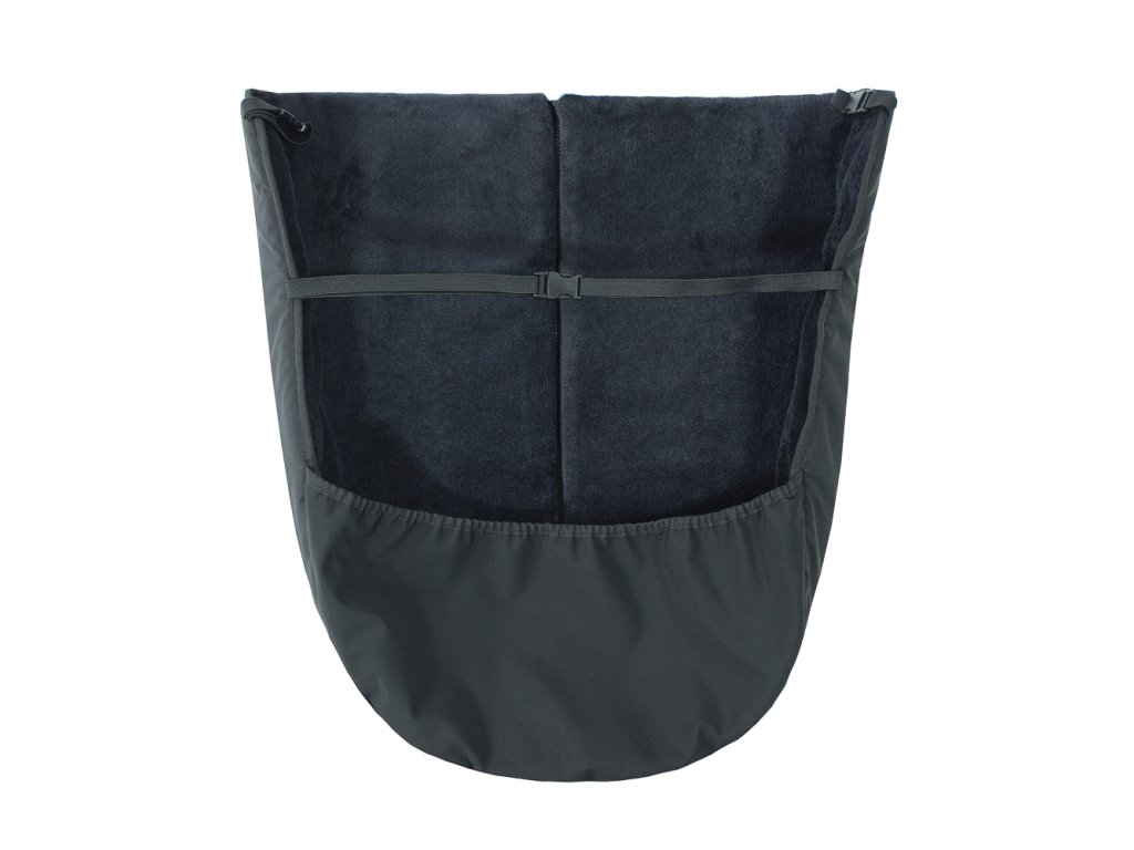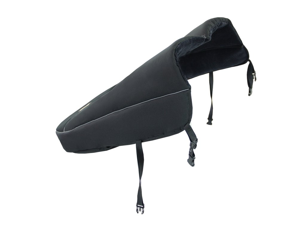 Nánožník Soft Black Move je univerzálně použitelný pro většinu sportovních a kombinovaných kočárků. Skládá se ze tří vrstev. První vrstvou je nepromokavý softshell, druhou vrstvou je kvalitní polyesterové rouno uvnitř a třetí vrstvou z vnitřní strany je teplý plyš. Ze spodní strany je vytvořena kapsa pro nohy, který je omyvatelná. Uchytit ke kočárku můžete pomocí delší gumy se sponou, která vede pod kočárkem a dvěmi sponami ve vrchní části k uchycení ke konstrukci kočárku.