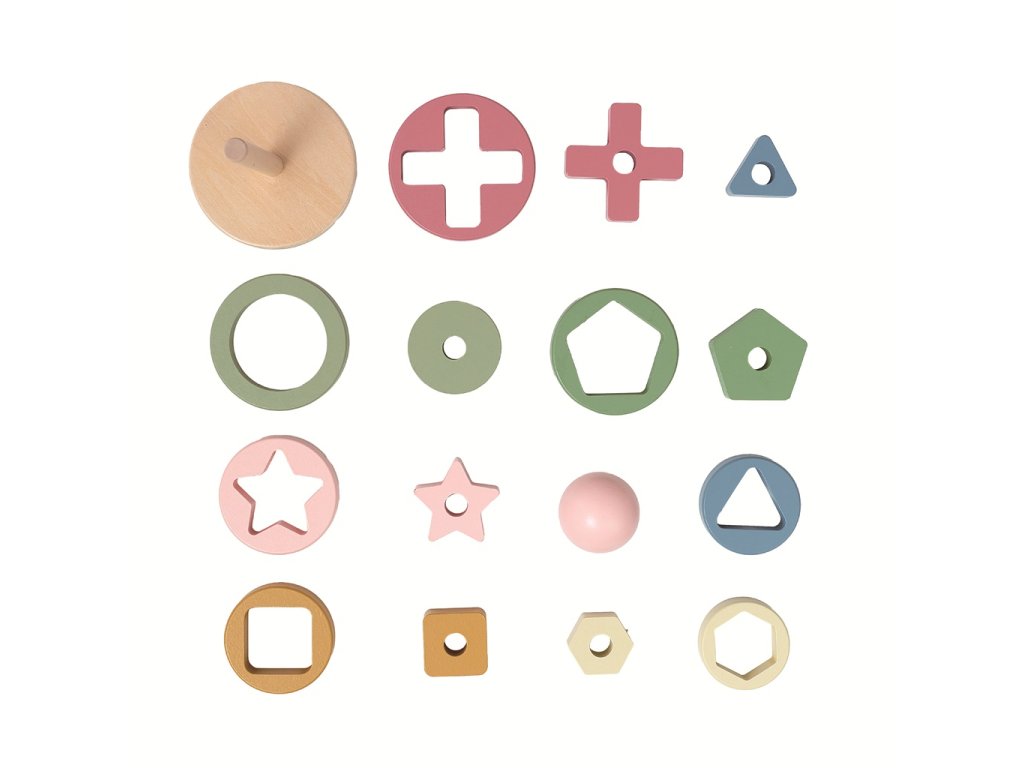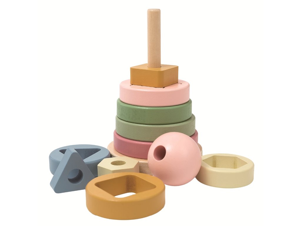 Panáček zve děti ke hře plné barev, tvarů a objevování! Na dřevěnou tyčku, která tvoří tělo panáčka, se postupně nasazují různě velké kroužky. Každý z nich ukrývá překvapení, uprostřed má výřez ve tvaru hvězdičky, čtverce, trojúhelníku a dalších, který dítě musí správně nasadit. Nakonec přijde na řadu kulatá hlavička a panáček je kompletní. Skládání rozvíjí jemnou motoriku, koordinaci ruka-oko i schopnost rozlišovat tvary a velikosti. Díky kombinaci dřevěného materiálu a přírodních zemitých odstínů se stane pěkným doplňkem dětského pokojíčku nebo herny. Hlavní vlastnosti: kombinace vkládací a stohovací hračkynasazování kroužků různých velikostírozvíjí jemnou motoriku a koordinaci ruka-okopomáhá s rozpoznáváním tvarů a velikostíkvalitní dřevěné provedeníjemné přírodní zemité odstínybezpečný a odolný designvhodné pro děti od 1 rokuSizing info