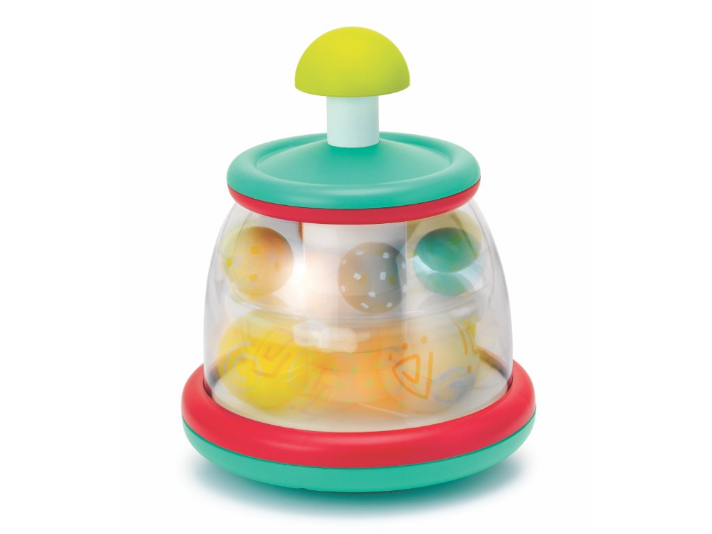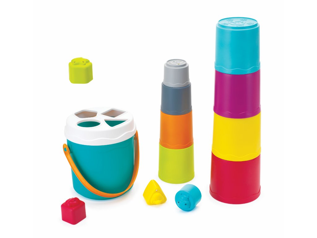 22-dílná sada hraček, která vaše dítě zabaví na dlouhé hodiny a zároveň zábavnou formou pomáhat rozvíjet motorické dovednosti, jednotlivé smysly i koordinaci ruka / oko dítěte. Sada obsahuje: Hrací pult s rotujícími míčky - pultík je naplněný různobarevnými míčky, které po zmáčknutí páky v horní části rotují kolem dokola. Jednoduchá, ale neodolatelná zábava! Stohovací kelímky v kyblíku - osm barevných stohovacích kelímků, které můžete stavět až do výšky 70 cm nebo naopak vkládat do sebe + kyblík s víkem, ve kterém jsou otvory čtyř různých tvarů, do nich pasují čtyři barevné kostky. Stohovací kelímky spolu s kostkami snadno složíte do kyblíku, který je opatřen praktickým držadlem. Nasazovací kroužky - děti se snaží umístit kroužky ve správném pořadí a vytvořit z nich pyramidu. Vhodné pro děti od 6 měsíců.Doplňkové parametry
