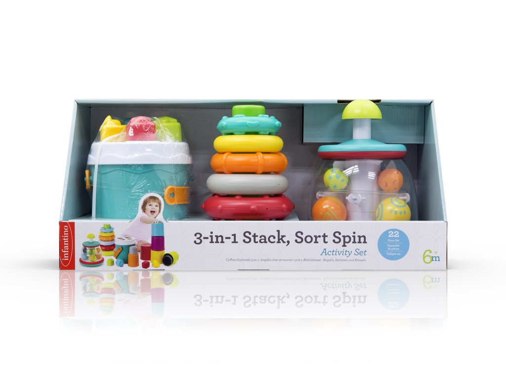 Infantino Sada hraček 3v1 Stack, Sort & Spin