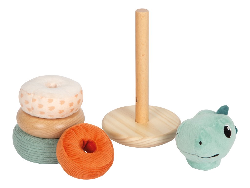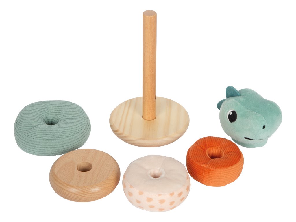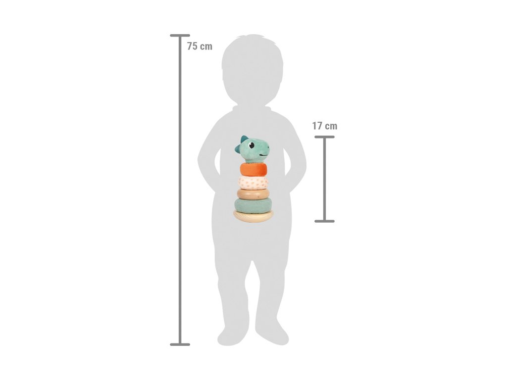 Se stohovací věží v designu barevného dinosaura bude trénink motorických dovedností zábavným a hravým zážitkem! Motorická hračka zaujme malé fanoušky dinosaurů kombinací plyše a dřeva. Trénuje koordinaci ruka-oko a jemnou motoriku, ale také oživí interiér dětského pokoje. Zábavná kolébající se věž se čtyřmi barevnými kroužky, bezpečnou pohyblivou centrální tyčí a usměvavou hlavou dinosaura pomůže dětem při rozpoznávání velikostí a barev. Základna věže je zaoblená, 3 kroužky jsou vyrobeny z látek různých vzorů, barev a textur a 1 kroužek ze dřeva. Tématem produktové řady "Dino" jsou fascinující prehistoričtí tvorové, kteří upoutají pozornost lidí všech věkových kategorií. Tyto hračky podporují rozvoj motorických dovedností, inspirují dětskou kreativitu a představivost a povzbuzují děti, aby se dozvěděly více o přírodě a historii těchto pravěkých obrů. Hlavní vlastnosti: 3 měkké látkové kroužky, 1 dřevěný kroužek, 1 dinosauří hlavapohyblivá centrální tyčpodporuje rozpoznávání barev a velikostítrénuje motoriku a koordinaci ruka-okosoučást produktové řady DinoSizing info