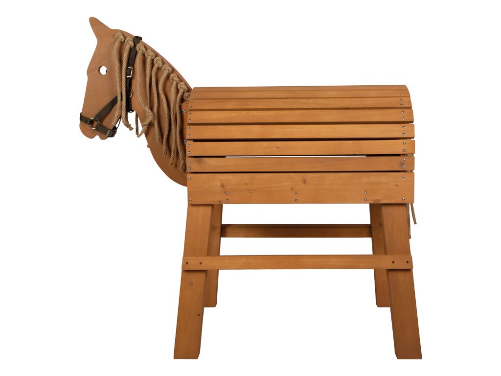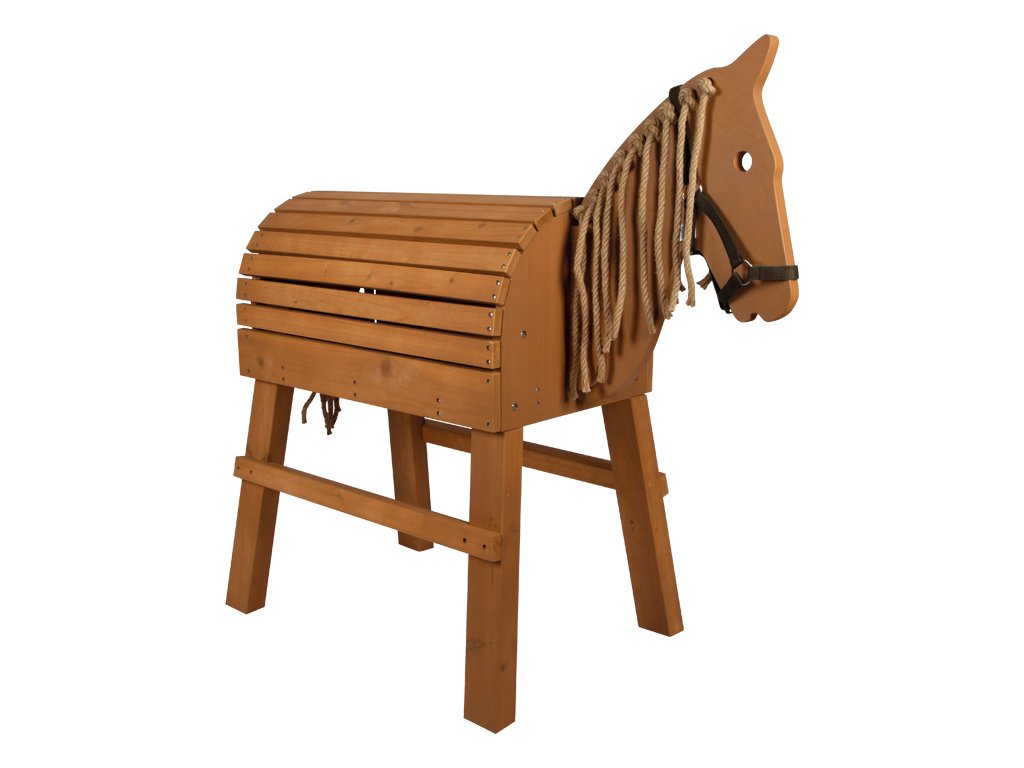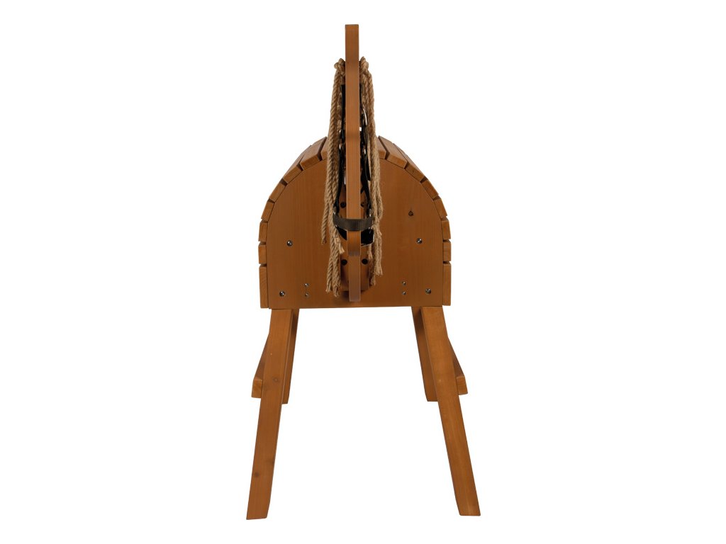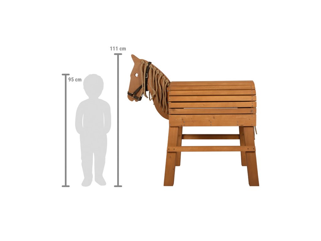 To je ale krásný koník! Děti si často přejí vlastního koně a s tímto dřevěným koníkem jim toto přání můžete splnit. Užijí si spoustu aktivní zábavy uvnitř i venku na zahradě. Koník v hnědé barvě je ošetřen barvou odolnou proti povětrnostním vlivům. Hříva a ohon jsou vyrobeny z přírodního sisalu a lákají k zaplétání. Hřbet koně je navržen tak, aby se na něj vešlo skutečné sedlo a sedák. Praktický schůdek umožňuje i těm nejmenším dětem snadno na koně nasednout a rozkročené nohy poskytují bezpečnost a stabilitu. V zadní části se nachází velký úložný prostor s dvířky, který nabízí spoustu místa pro uložení uzdy a dalšího vybavení. Děti se naučí základy o koních, ponících a jízdě na nich. Se sisalovou hřívou a ohonem si děti mohou procvičit jemnou motoriku. Hlavní vlastnosti: aktivní zábava uvnitř i venkuhříva a ocas ze sisalustabilní a bezpečnévhodné pro sedák a skutečné sedlo.prvotřídní materiál odolný povětrnostním vlivůms úložným prostoremintegrovaný schůdek pro snadné nasedánívčetně uzdySizing info