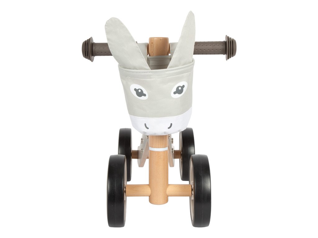 Dřevěné odrážedlo v designu oslíka, které se stane nepostradatelným pomocníkem Vašeho dítka doma i při procházkách venku. Proč namáhat nožičky, když může sednout a frčet?! Dřevěná robustní konstrukce je nejen příjemná na dotek, ale i nesmírně stabilní. Pogumovaná kola zajistí, že vaše dítě může prozkoumávat svět tiše a bezpečně, aniž by rušilo okolí. Gumové rukojeti nabídnou malým průzkumníkům pevný úchop a kontrolu nad svým vozítkem. Sedátko je nastavitelné od 22 do 25 cm, může se tak přizpůsobit výšce dítěte. Součástí je také odepínatelná taška na řídítkách v designu oslíka, která může sloužit jako praktický úložný prostor pro láhev s pitím či plyšového kamaráda. Zadní kola jsou blízko sebe a nabízejí tak dostatek prostoru pro nohy při odrazu. Hlavní vlastnosti: zajímavý design s funkčními prvkynastavitelné sedátko na výšku a vzdálenost od řídítekodnímatelná taška v designu osladřevěná robustní konstrukcepogumovaná kolagumové rukojetirozvíjí pohybové dovednosti a rovnováhu dětívhodné pro děti od 12 měsícůSizing info