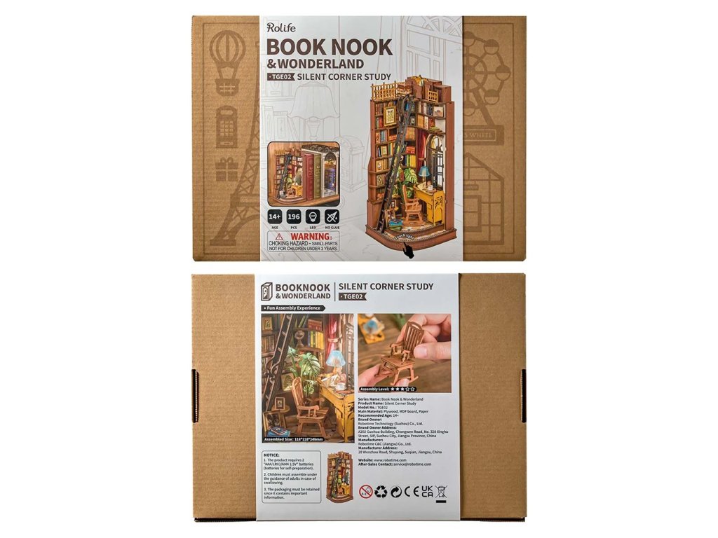 Když je svět kolem Vás hlučný, klid najdete v tichém zákoutí s knihovničkou v útulné studovně v britském elegantním stylu. V každém detailu se odráží poklidná atmosféra starobylé knihovny, od vintage polic, přes stylový nábytek až po promyšlené doplňky, které dohromady vytvářejí uzavřený svět plný ticha a soustředění. Klasická dlažba s motivy hvězd a geometrických vzorů odkazuje na počátek 20. století a dodává scéně historickou atmosféru. Zarážka na knihy a dekorace v jednom krásně propojuje praktičnost s estetikou a oživí každou knihovnu, čtenářský koutek či pracovní stůl. 3D skládačka je skvělý způsob, jak si užít kreativní a edukativní hraní a zároveň vytvořit nádherný model, který se může stát netradičním dárkem či ozdobou interiéru. Skládání podporuje rozvoj jemné motoriky, prostorového myšlení a trpělivosti. Je to možnost, jak kombinovat zábavu se vzděláváním. Všechny přesně vyřezané dílky do sebe lehce zapadnou bez použití lepidla či nástrojů, aby výsledek byl stabilní a odolný. Skládačka je dodávána v nesloženém stavu, zabalená v krabici s podrobným návodem k sestavení. K napájení slouží 2x AAA /LR03/AM4 1,5 V (nejsou součástí balení). Hlavní vlastnosti: 196 dílkůdoba skládání 3 hodinystřední obtížnost sestaveníLED osvětlenísestavení bez použití lepidla a nástrojůvýjimečný vzhledvhodné pro děti i dospělérozvíjí logické a motorické dovednostipodporuje trpělivost dětíideální dárek nebo jedinečná dekoracenapájení pomocí 2x AAA /LR03/AM4 1,5 V (nejsou součástí balení)Sizing info
