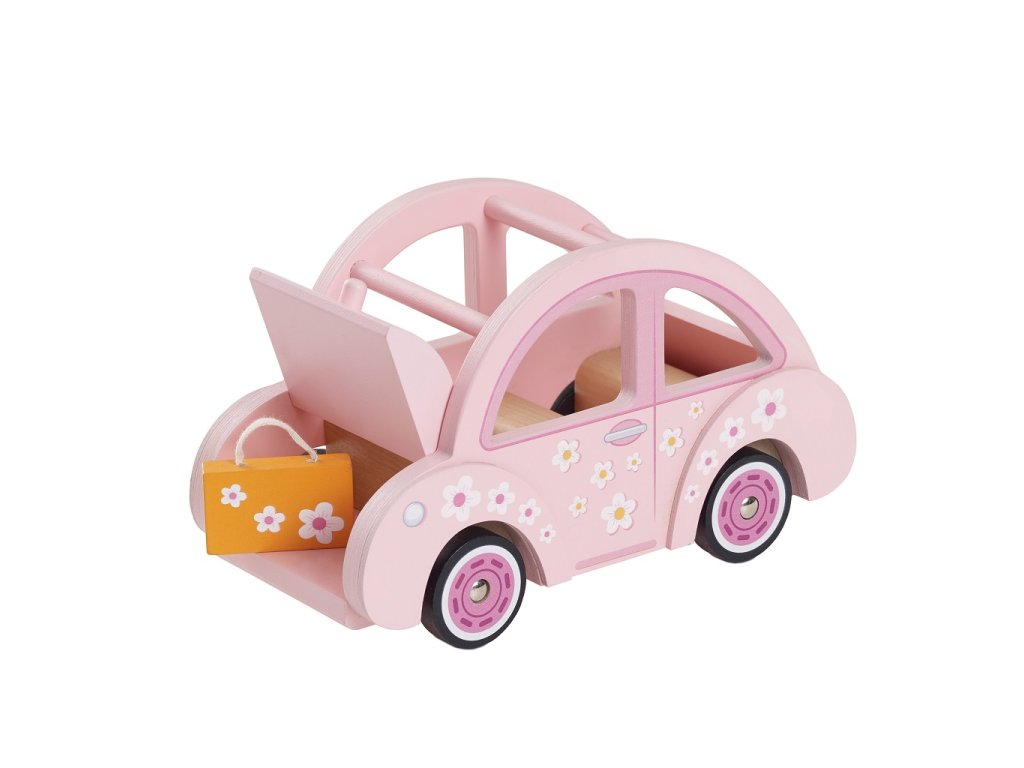 Tú tú! Stylová projížďka v růžovém retro autu? Kdo by odolal. Dřevěné autíčko má otevíratelný zavazadlový prostor, vložte do něj vkusný kufřík a můžete vyrazit. Malováno v pastelových odstínech růžové, do tohoto auta se vejdou až 4 miniaturní pasažéři. Hračka děti inspiruje k představivé hře, také pomůže s rozvojem jemné motoriky. Designováno v tradičním stylu z odolného a udržitelného dřeva, tato hračka vám vydrží opravdu dlouho. Velikostně vhodné pro postavičky Le Toy Van, nejsou součástí balení. Hlavní vlastnosti: pro panenky do velikosti 13 cmvyrobeno eticky z udržitelného FSC dřevatestováno dle nejpřísnějších standardůmalováno netoxickými barvami na bázi vodyinspiruje ke kreativní a představivé hře Daisylane kolekce: Prestižní kolekce domečků pro panenky a doplňků firmy Le Toy Van. Před více než 25 lety zakladatel Georges navrhl svůj úplně první domeček pro panenky, stavební kámen této firmy. Vyrobeno eticky z udržitelných materiálů, dřevěné domečky pro panenky Daisylane jsou jedinečné a nebudou dětskou představivost držet zpátky. Rodinné dědictví, opravdová investice do hraní. Značka a certifikát FSC® (Forest Stewardship Council) zaručuje, že dřevo, ze kterého byl produkt vyroben, nebylo vytěženo nelegálně a pochází z lesů obhospodařovaných šetrným či přírodě blízkým způsobem, ve kterém jsou dodržovány přísné environmentální a sociální požadavky. Značka FSC® na výrobku znamená, že svým nákupem pomáháte chránit lesy a podporujete šetrné, odpovědné či přírodě blízké hospodaření, díky kterému jsou naše lesy stabilnější, zdravější, mají přirozenou druhovou skladbu a lépe odolávají negativním následkům klimatických změn.Sizing info