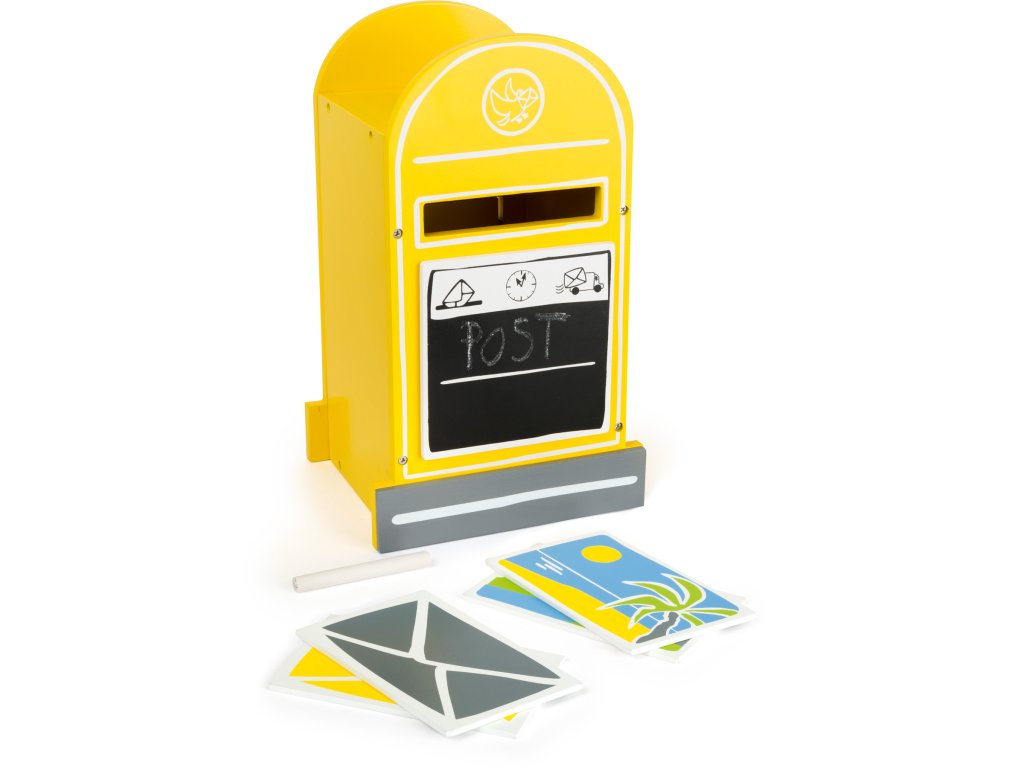 Pošta dorazila! Na tabuli na přední straně schránky lze psát podle potřeby přiloženými křídami. Tuto poštovní sadu doplňují čtyři dřevěné popisovatelné pohlednice a dopisy. Lze ji snadno vyprázdnit dvířky na zadní straně. Hlavní vlastnosti: poštovní schránka a 4 křídou popisovatelná psaní prohlubuje dětskou představivost a kreativituSizing info