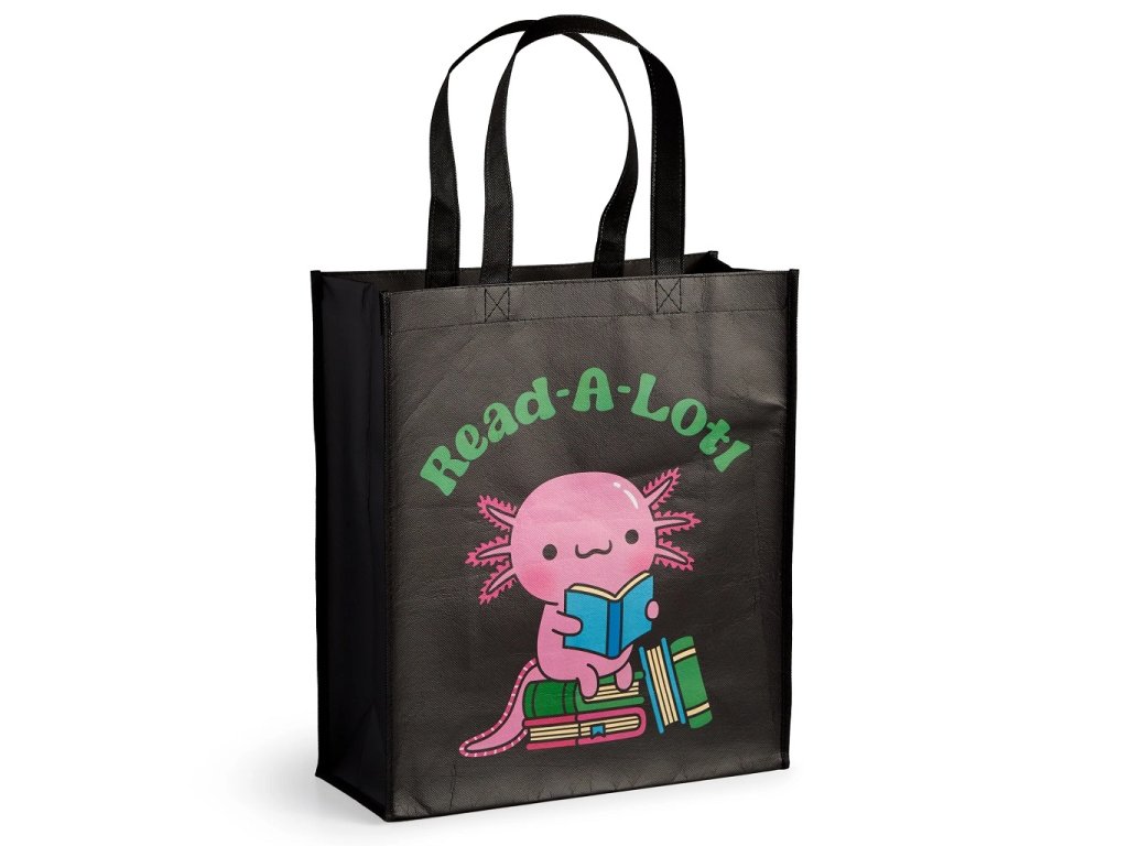 Opakovaně použitelná nákupní taška zobrazuje axolotla, který sedí na knihách a čte si. Tato taška je skvělou alternativou jednorázových plastových tašek za nízkou cenu. Hlavní vlastnosti: lehce omyvatelnáalternativa jednorázových plastových tašekSizing info