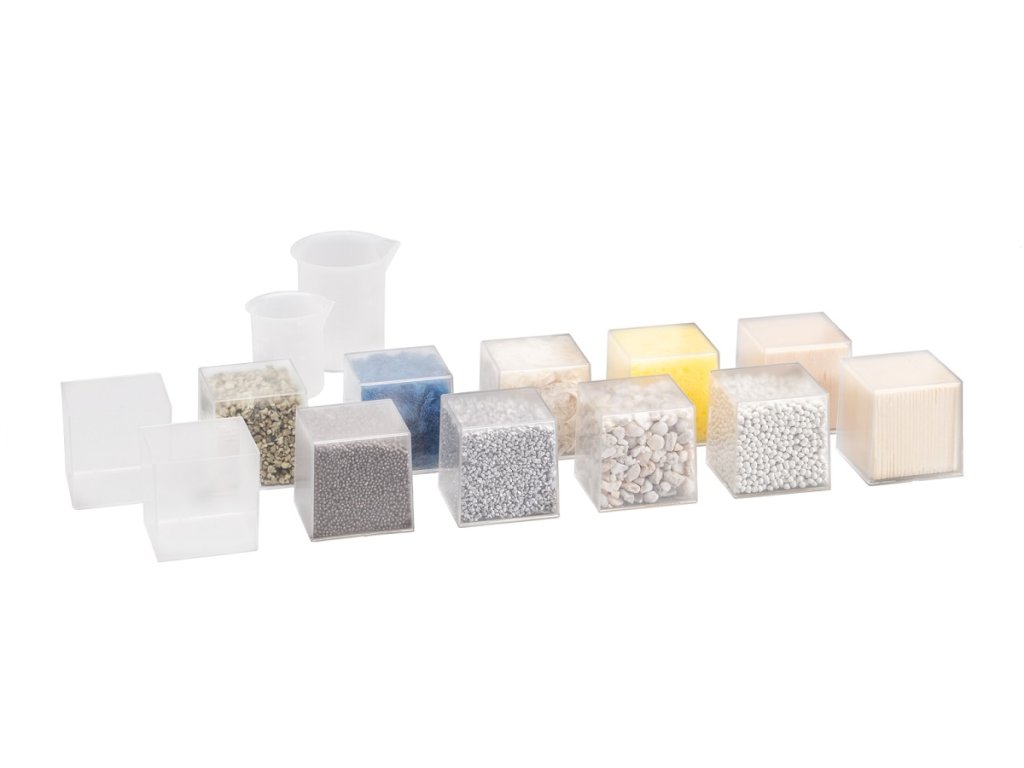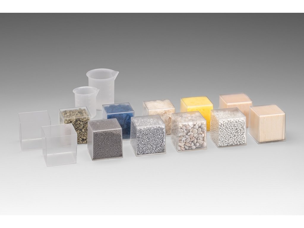 Sada obsahuje 10 kostek naplněných různými materiály jako je peří, vlna, pemza, štěrk, balzové dřevo, smrk, pěna, plast, hliník a železo, a také 9 prázdných kostek. Dále 2 odměrky o objemu 50 a 100 ml. S touto sadou se naučíte správné používání termínů a dělání předpokladů jako je těžší než... Je snazší než... Je stejně těžké jako... Odhadujte a porovnávejte hmotnost, vhodné pro přímou manipulaci s různými hmotami pro rozvoj představ o velikosti. Vyrobeno ze 100 % recyklovaného plastu a po použití jej lze opakovaně recyklovat. Hlavní vlastnosti: obsahuje 10 kostek s materiály, 9 kostek prázdných, 2 odměrkyprvní hravé zkušenosti s fyzikou, chemii a matematikouvyrobeno v NěmeckuSizing info