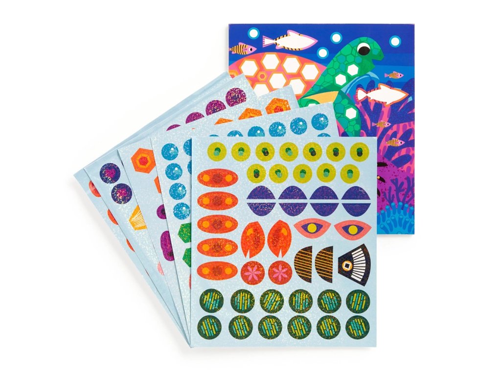 Rozvíjejte fantazii svého dítěte a vydejte se na magické dobrodružství plné rozkošných třpytivých obrázků a zářivých barev! Sada samolepek obsahuje pestrobarevnou scénu podmořského světa s více než 200 třpytivými holografickými samolepkami. Děti mohou scénu podmořského korálového útesu oživit a rozzářit pomocí samolepek. Sada je interaktivní, zábavná a poskytuje dětem zážitky při hře bez obrazovek a podporuje učení. Rozvíjí dovednosti dětí v různých oblastech včetně koordinace ruka-oko, rozpoznávání barev, vizuálního rozlišování, kreativity a vytrvalosti. Samolepky se snadno odlepují a nalepují, takže i malým ručičkám umožňují tvorbu krásných uměleckých děl. Sada byla vytvořena podle námětu Natalie Marshall, umělkyně, která se inspiruje barvami a texturami nacházejícími se v přírodě, motýly počínaje a korálovými útesy konče. Vyrobeno z papíru s certifikací FSC® a potištěno rostlinnými barvami. Všechny produkty splňují bezpečnostní předpisy CPSIA, ASTM a CE. Hlavní vlastnosti: oboustranná scéna, více než 200 samolepekrozvíjí koordinaci ruka-oko, rozpoznávání barev, kreativitu a vytrvalostnámět Natalie Marshallvyrobeno z papíru s certifikací FSC®potištěno rostlinnými inkoustyvhodné od 4 let Značka a certifikát FSC® (Forest Stewardship Council) zaručuje, že dřevo, ze kterého byl produkt vyroben, nebylo vytěženo nelegálně a pochází z lesů obhospodařovaných šetrným či přírodě blízkým způsobem, ve kterém jsou dodržovány přísné environmentální a sociální požadavky. Značka FSC® na výrobku znamená, že svým nákupem pomáháte chránit lesy a podporujete šetrné, odpovědné či přírodě blízké hospodaření, díky kterému jsou naše lesy stabilnější, zdravější, mají přirozenou druhovou skladbu a lépe odolávají negativním následkům klimatických změn.Sizing info