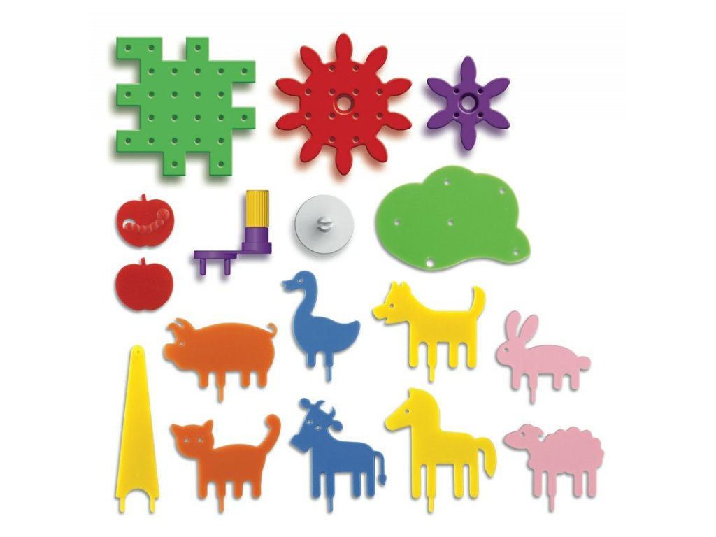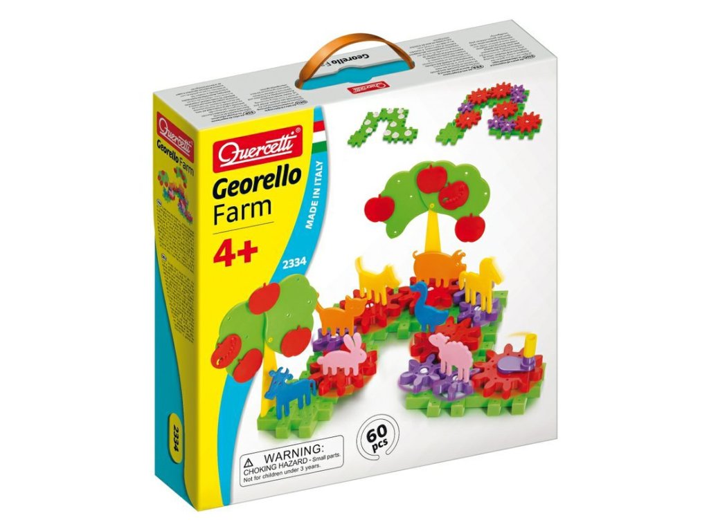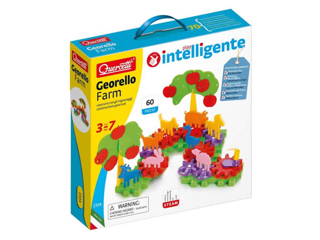 Převodové stavebnice Georello rozvíjí jemnou motoriku, tvořivost, fantazii a logicko-kombinační myšlení. Skládají se z perforovaných desek, os, převodových kol, figurek domácích či divokých zvířátek a stromů. Pomocí kličky lze celý mechanismus uvést do pohybu a vše se otáčí jako na kolotoči.Každá stavebnice je kompatibilní s ostatními stavebnicemi řady Georello. Vyrobeno z plastů špičkové kvality. Oceněno titulem „Správná hračka“. Hlavní vlastnosti: rozvíjí jemnou motoriku, tvořivost, fantazii a logicko-kombinační myšleníbalení obsahuje 60 dílkůpro děti od 3 letSizing info