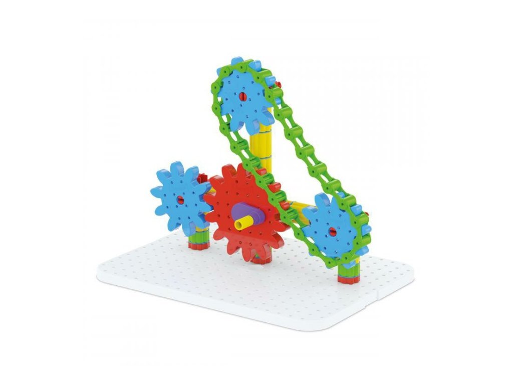 Pevná základní deska umožňuje sestavování vodorovných i svislých převodových soustav jak podle přehledného obrazového návodu, tak na základě vlastních nápadů a fantazie. Děti od 5 do 10 let tak díky této nerozbitné a bezpečné hračce procvičují a rozvíjejí jemnou motoriku, logické a matematické myšlení i schopnost řešit problémy, učí se pracovat s chybou a zábavnou formou se seznamují s principy mechaniky.Oceněno titulem "Správná hračka". Obsah balení: 1 bílá základní deska + 1 klika1 velké ozubené kolo5 středních ozubených kol2 malá ozubená kola23 sloupků + 6 červených patek20 modrých spojek1 řetěz s 25 články8 červených čtyřsměrových spojek9 spojovacích kolíků1 album s obrazovým návodem Všechny stavebnice Georello od značky Quercetti jsou mezi sebou plně kompatibilní. Hlavní vlastnosti: rozvíjí jemnou motoriku, tvořivost, fantazii a kombinační myšleníbalení obsahuje 100 dílkůpro děti od 5 let Označení „Správná hračka“ je udělováno produktům, které cílí na děti předškolního věku a vynikají zejména výchovnými kvalitami, ale i vysokým standardem zpracování, komfortem používání a estetickou úrovní. Záměrem tvůrců ocenění je poskytovat vodítko a oslovovat rodiče i pedagogy, kteří chtějí ovlivňovat směřování nabídky a za prvořadý považují zdravý osobnostní rozvoj dětí. Tím chtějí tvůrci podněcovat k rozšiřování a vývoji nových hodnotných hraček či her. Označení je udělováno od roku 1994 a je společným projektem Sdružení pro hračku a hru, Asociace hračka Unie výtvarných umělců ČR a Asociace předškolní výchovy. Tato sdružení společně s Uměleckoprůmyslovým muzeem v Praze a Městským muzeem v Kamenici nad Lipou udělují ocenění při příležitosti festivalu Hračkobraní konajícího se každoročně od roku 2006 na zámku v Kamenici nad Lipou, kde můžete mimo jiné zhlédnout stálou expozici všech oceněných hraček.Sizing info