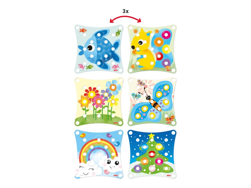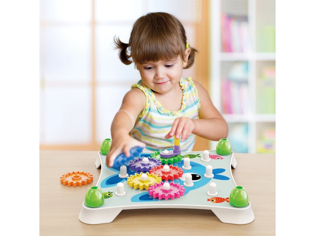 Uspořádejte kartu, zařaďte převody, otočte klikou a sledujte velkolepou řetězovou reakci, která překvapí a potěší všechny děti. Dítě se naučí základní principy mechaniky a užije si přitom spoustu zábavy. Nerozbitné a bezpečné. Vyrobeno z plastů špičkové kvality. Obsah balení:1 bílá základna1 klika7 barevných převodů3 oboustranně ilustrované karty Hlavní vlastnosti: rozvíjí jemnou motoriku, tvořivost, fantazii a logicko-kombinační myšleníbalení obsahuje 13 dílkůpro děti od 2 letSizing info