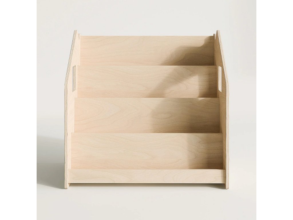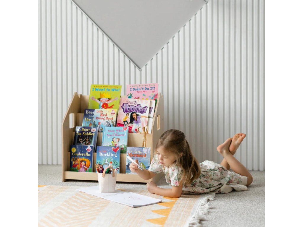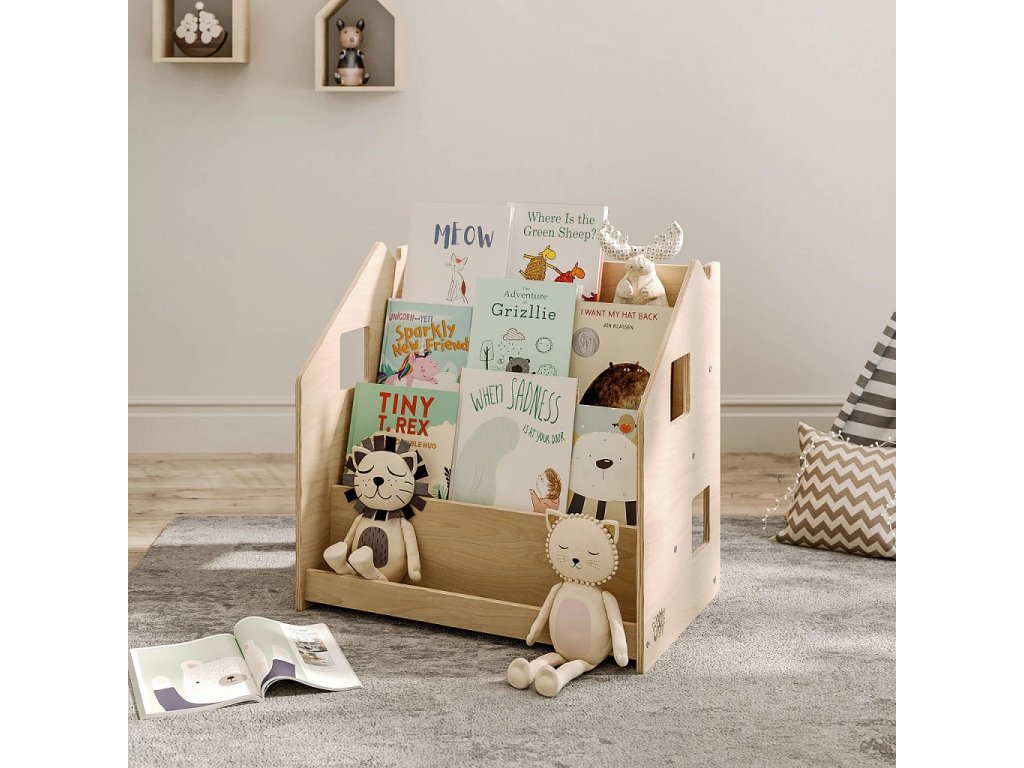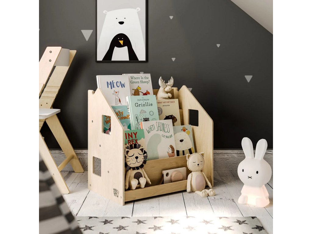 Tento stojan na knihy je navržen tak, aby podporoval dětskou samostatnost a rozvíjel jejich zájem o čtení. Díky tomu, že jsou knížky vidět obálkami dopředu, děti si snadno vyberou tu, která je zaujme a po přečtení ji zase jednoduše vrátí na místo. Police nabízí čtyři prostorné regály a zadní úložný prostor vhodný pro knihy či hračky. Robustní a bezpečná konstrukce s pečlivě zaoblenými hranami je ošetřena lakem na vodní bázi. Díky jednoduchému, čistému designu krásně zapadne do každého interiéru.Stojan je vyroben z kvalitní březové překližky a barevné odchylky, uzly či drobné opravy ve dřevě jsou přirozené a dodávají výrobku jedinečný charakter.Barva produktu se může mírně lišit od fotografie v závislosti na nastavení vašeho zařízení. Hlavní vlastnosti: bezpečný a odolný4 regály a zadní úložný prostorvyrobeno z kvalitní březové překližky, bezpečné laky na vodní bázivyrobeno v České republiceSizing info