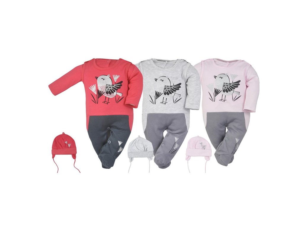 3-dílná bavlněná soupravička Koala Birdy. Soupravička obsahuje čepičku, kabátek, dupačky a je vhodná pro miminka už od narození pro svou jemnost a měkkost. Dupačky zdobí roztomilý obrázek. Zapínání na cvočky na ramínku a mezi nožičkama usnadňuje oblékání a přebalování. Kabátek se zapíná na cvočky po celé délce. Čepička na zavazování se širším lemem krásně kryje ouška, netlačí na hlavičku miminka a je zdobena obrázkem. Složení: 100% bavlna.Doplňkové parametry
