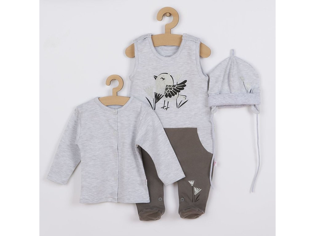 3-dílná bavlněná dětská souprava Koala Birdy šedá