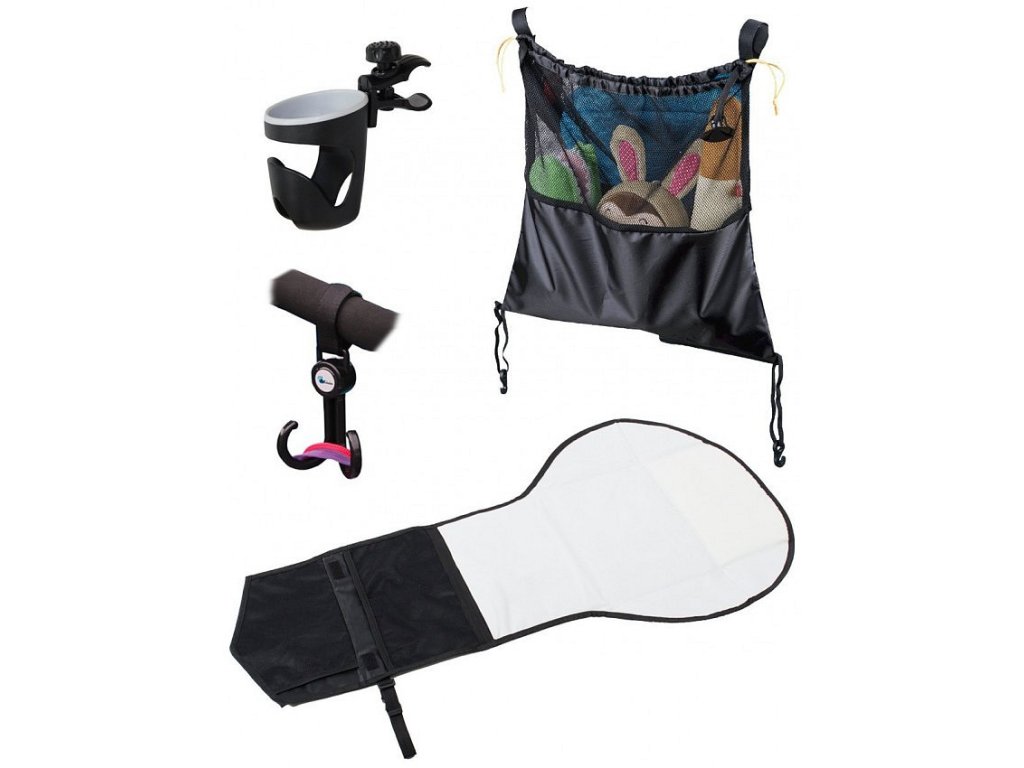 Sada kočárku obsahuje luxusní cestovní sadu na přebalování, háček na kočárek, držák na pití do kočárku, síťovanou tašku na kočárek, které dohromady tvoří pohodlnou sadu na procházku nebo nakupování s vaším malým dítětem.
