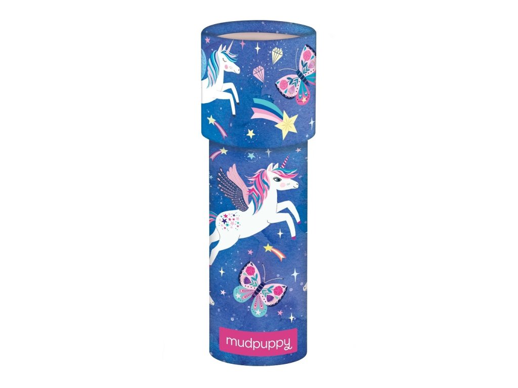 Podívejte se okulárkem a zažijte kouzlo kaleidoskopu. Otočíte pozorovací trubicí a uvidíte barevné kresby představující drahokamy, fantazii se meze nekladou. Kaleidoskop je ozdoben motivy jednorožců, motýlů a padajících hvězd. Hlavní vlastnosti: rozvíjí představivostvšechny produkty Mudpuppy splňují bezpečnostní normy CPSIA, ASTM, CESizing info