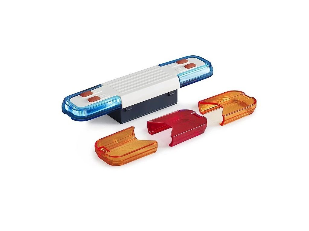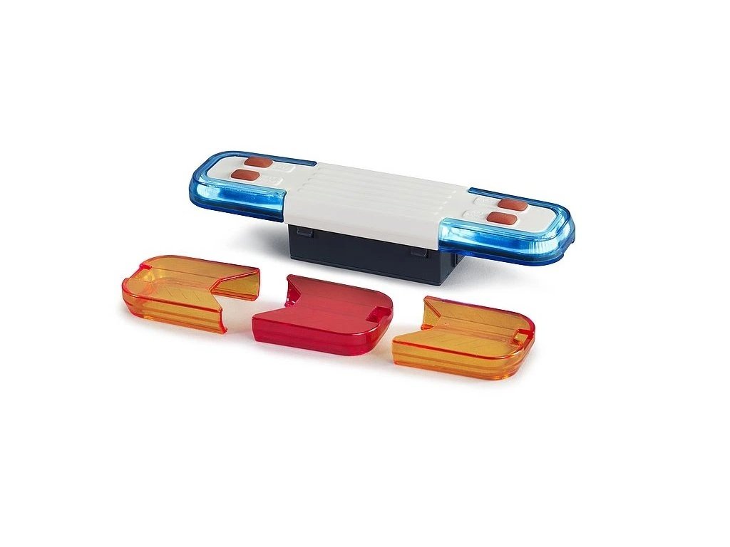 Moderní světelný a zvukový modul vyniká špičkovým designem a rozšiřuje funkce všech nákladních vozů BRUDER. Čtyři různá funkční tlačítka umožňují přehrávání zvuků motoru, policejní sirény, hasičské sirény a výstražného signálu po dobu přibližně 20 sekund. Krátký výstražný signál je obzvlášť vhodný pro použití v hustém provozu a na křižovatkách, kde přitahuje větší pozornost při zapnutém výstražném světle a zvuku záchranných vozidel. Světelná funkce se spouští současně s odpovídajícím zvukem. Modul umožňuje nasazení dvou modrých krytů (např. pro policii), dvou oranžových krytů (např. pro servisní vozidla) a jednoho červeného krytu (např. pro záchranné služby v USA) v libovolné kombinaci. Díky standardizovanému BRUDER konektoru je tento modul velmi univerzální. Součástí balení je také adaptér, který umožňuje použití modulu i na nákladních vozech s otvorem ve střeše. Hlavní vlastnosti: automatické vypnutí po cca 30 sekundáchrychlé vypnutí opětovných stiskem tlačítka4 zvuky – motor, policejní siréna, výstražný policejní signál, hasičská sirénasvětelná funkcenapájení 2x AAA baterie (jsou součástí balení)vyrobeno v NěmeckuSizing info