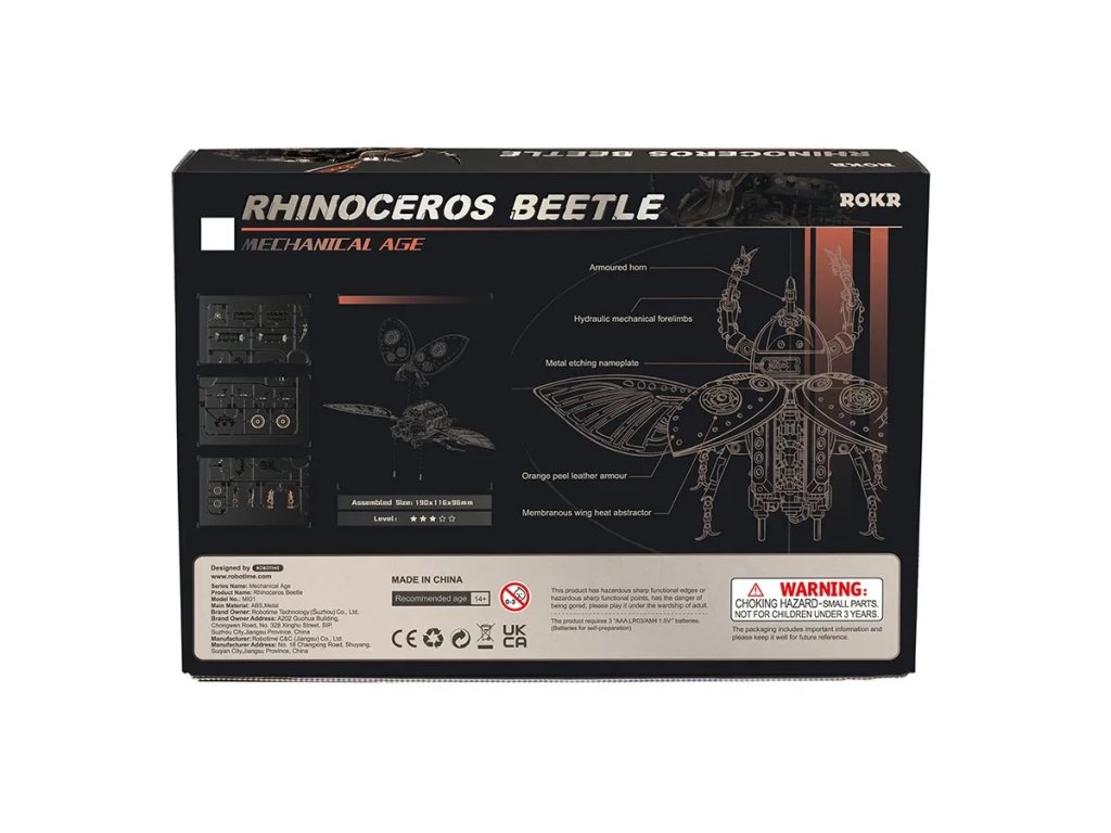 Zdokonalte své technické dovednosti díky novému 3D mechanickému puzzle představujícímu brouka nosorožíka! Postavte si svého vlastního nosorožíka ze 156 dílků a prožijte úžasné tři hodiny zábavy. Tento jedinečný model Vás nejen zabaví, ale také nadchne svými detaily a funkcemi. Perfektně zpracovaný tvar těla, roh, nohy a křídla, inspirované skutečným nosorožíkem, jsou spojeny se steampunkovými prvky a přinášejí vám nejen estetický zážitek, ale také hlubší porozumění mechanice a strojírenství. Představte si, jak držíte v ruce výsledek své práce – dokonalého nosorožíka, který je vybaven osmiválcovým motorem typu V, indikátorem stavu motoru, hydraulickými mechanickými končetinami a mnohými dalšími funkcemi, které vás překvapí a nadchnou. Membránová křídla mohou vibrovat 618krát za minutu, což simuluje pohyb skutečných nosorožíků. Užijte si nezapomenutelné chvíle při stavbě a poté obdivujte své mistrovské dílo, ale nejen to, obdiv a úžas může zažít i vaše rodina a přátelé. Baterie 3x AAA není součástí balení. Hlavní vlastnosti: počet dílů 156střední obtížnost sestaveníprovoz na baterie 3 AAA - nejsou součástí baleníosmiválcový motor typu Vrychlost motoru až 1200 ot./minLED kontrolka motoruhydraulické mechanické končetinykovový leptaný štítekobrněný rohvhodné od 14 letSizing info