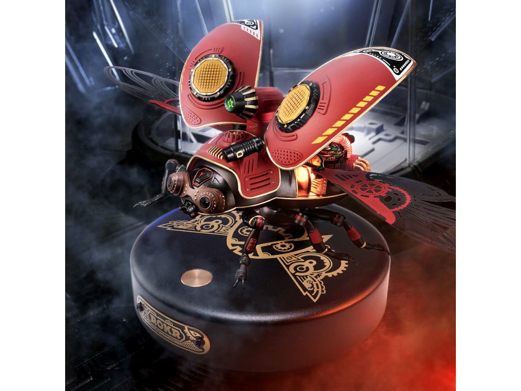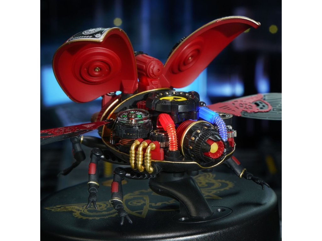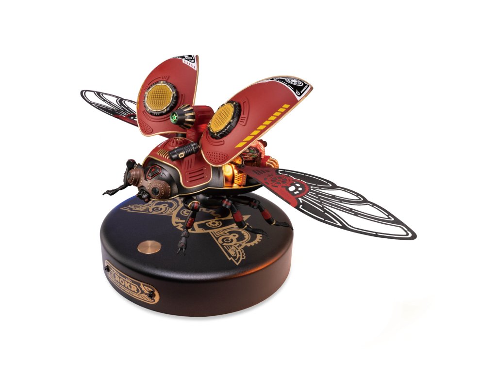 Originální mechanický brouk je připraven k průzkumnému letu! Nechejte se okouzlit atraktivním provedením a výbavou. Při jeho sestavování prověříte svůj důvtip, trpělivost a zručnost. Až budete s prací hotovi, můžete obdivovat, jak mává křídly a osvětluje okolí ve snaze vyhnout se nebezpečí. Na poličkách fanoušků science fiction a steampunku se bude zvláště vyjímat! Stavebnice kombinuje detailně zpracované plastové a kovové díly, které jsou pečlivě nalakované a potištěné. Obsahuje bateriově (baterie nejsou součástí balení) napájený pohon a LED osvětlení. Hotový model lze spouštět a vypínat pomocí dotekového ovládání umístěného v základně. Dodáváno v nesloženém stavu, baleno v krabici. Vybaveno detailním návodem k sestavení. Hlavní vlastnosti:poutavé provedení z kovu a plastumotorem poháněná křídla, LED osvětlení (3×AAA baterie nejsou součástí balení)147 dílů celkemstřední obtížnost sestaveníSizing info