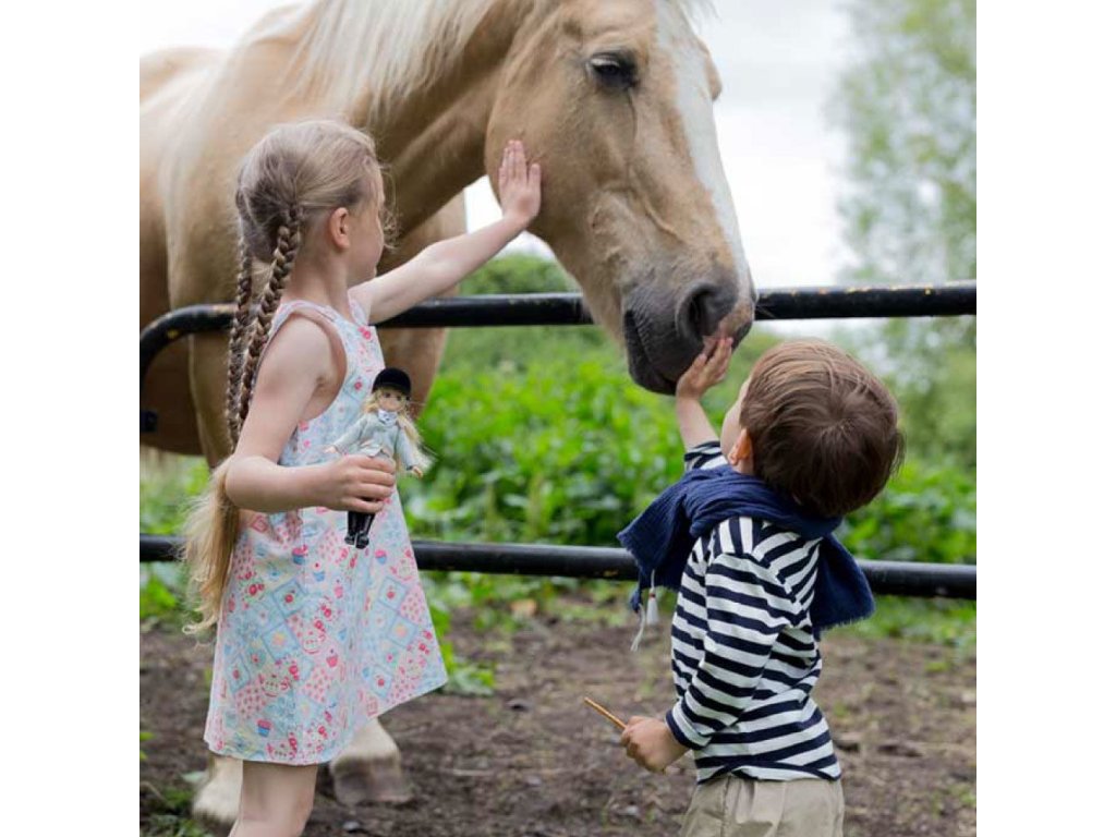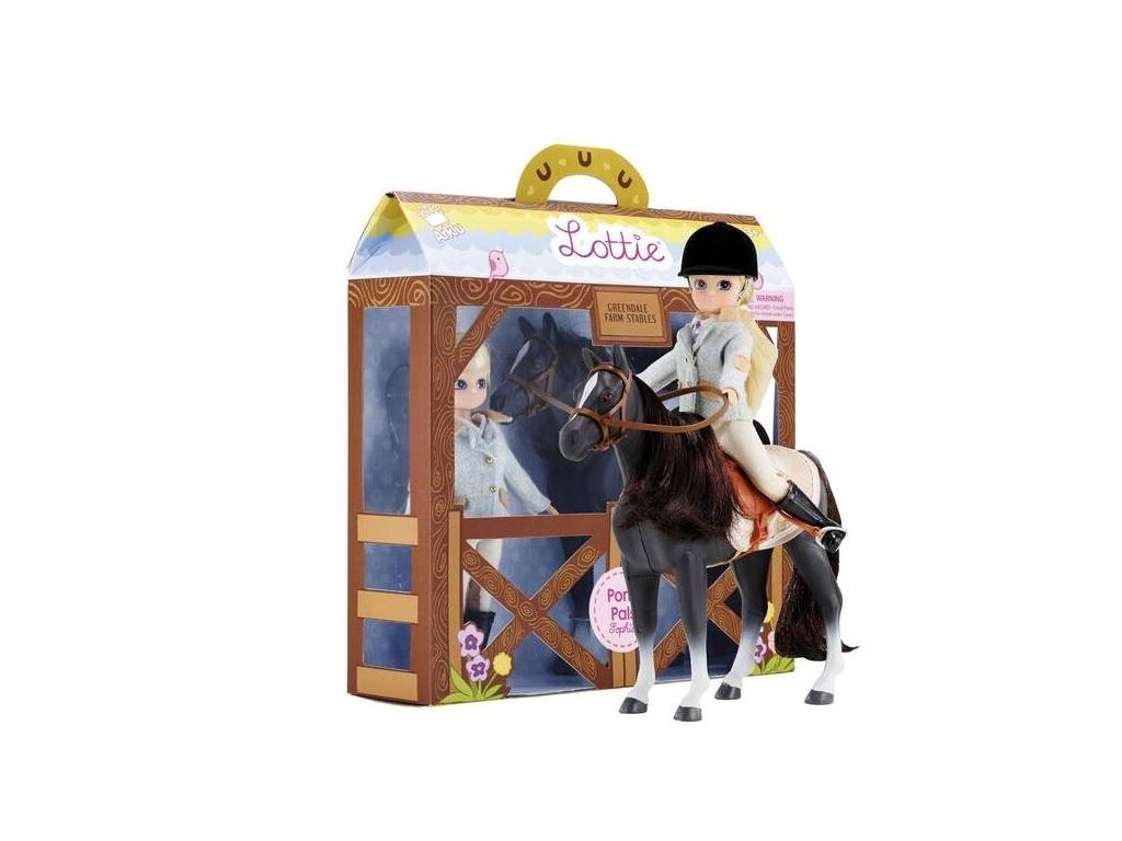 Lottie Panenka žokejka s koněm Díky krásnému barevnému boxu (s rukojetí k jednoduchému přenosu) nepotřebuje tato panenka žádný další obal. Byla navržena v Irsku a také vyhrála ocenění za panenku s mnoha detaily, což je důležitého pro každého sběratele. V balení: Jezdecké rajtkyTvídové jezdecké sakoKošile a kravataJezdecké botyJezdecká helmaVelšský pony Seren má sedlo, uzdu, třmeny a sedlovou podložku Hlavní vlastnosti Kloubová panenka s pohyblivými koleny, perfektní pro představivou hruPrémiové nylonové vlasy jsou hebké na dotek a nezamotávají sePanenka z plastu bez ftalátů, měkká na dotekPanenka má odnímatelné boty a stojí samostatněBlond vlasy, modré očiMilované všemi dětmi, vhodné od 3+ letMalá a roztomilá panenka ve velikosti 18 cm Jezdectví není jen o jízdě samotné – Lottie se také učí jak se o koně starat, studuje na závody, čte si o krmení koní, jejich chování a také jak správně hřebelcovat. Lottie se snaží vylepšit si jezdecké dovednosti, ale také získat nové přátele, kteří sdílí její lásku k těmto lichokopytníkům. Vždy si spolu užijí mnoho zábavy.Sizing info