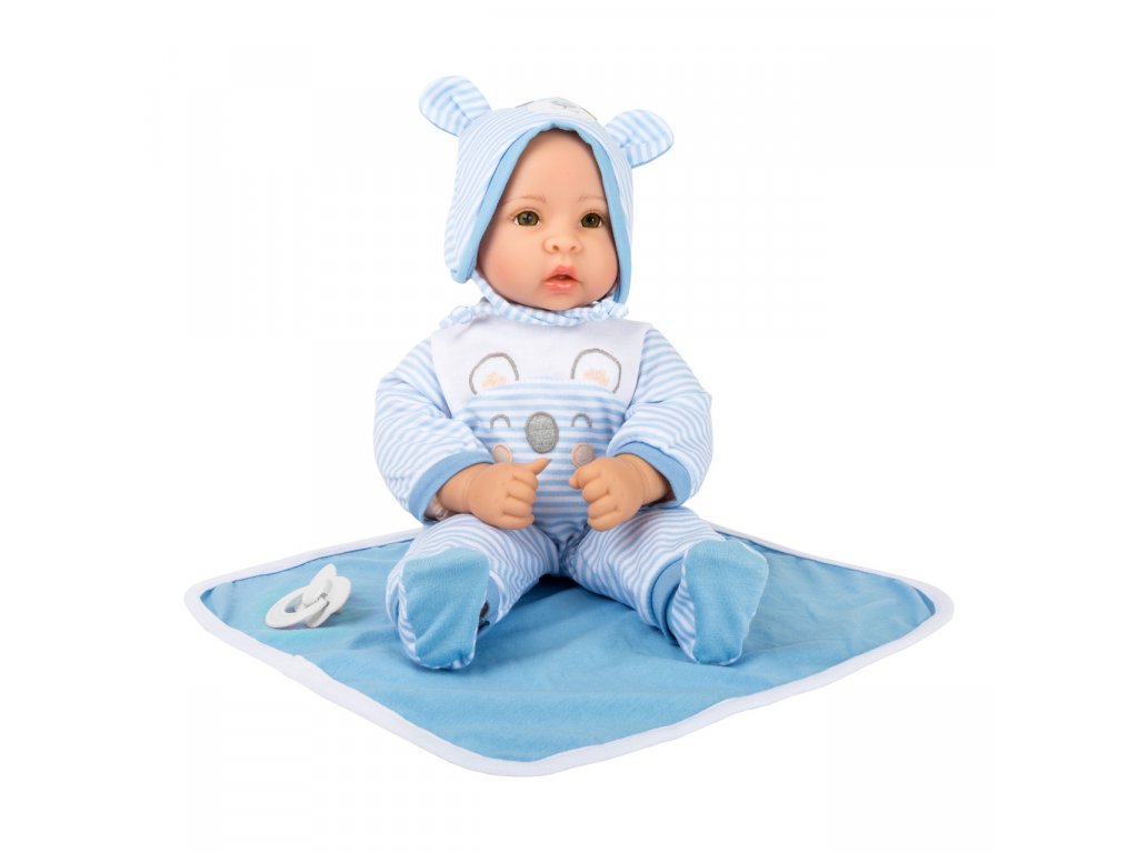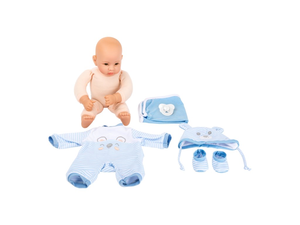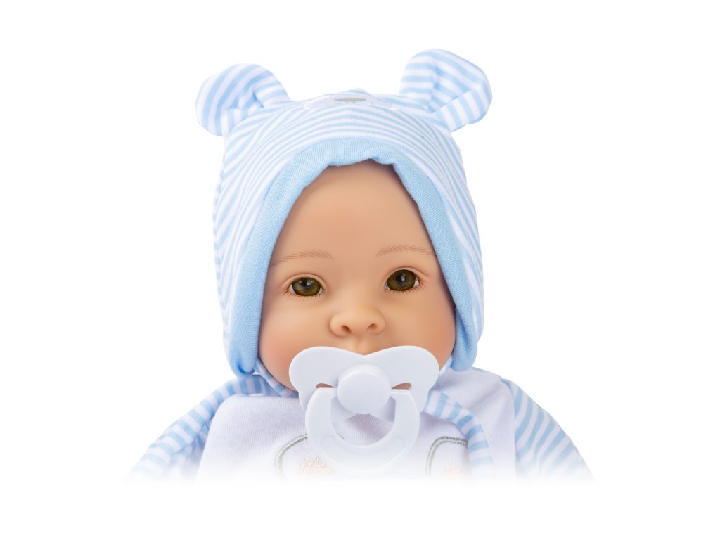 Panenka Lucas s měkkým látkovým tělem a plastovou hlavičkou a končetinami se spoustou doplňků. Oblečení pro panenku se snadno obléká i svléká. Součástí balení je i barevně sladěný dudlík a deka. Obzvláště realistický výraz obličeje s krásnýma nemrkacíma očima. S panenkami s měkkým tělem si hrají mladší děti, jejichž motorické dovednosti ještě nejsou tak vyvinuté. Hraní s panenkami podporuje rozvoj představivosti a sociálních dovedností. Dokonalý společník na hraní a mazlení díky měkkému tělu. Hlavní vlastnosti: měkké látkové tělíčkorozvíjí představivost a sociální dovednostisoučástí balení je oblečení panenkySizing info